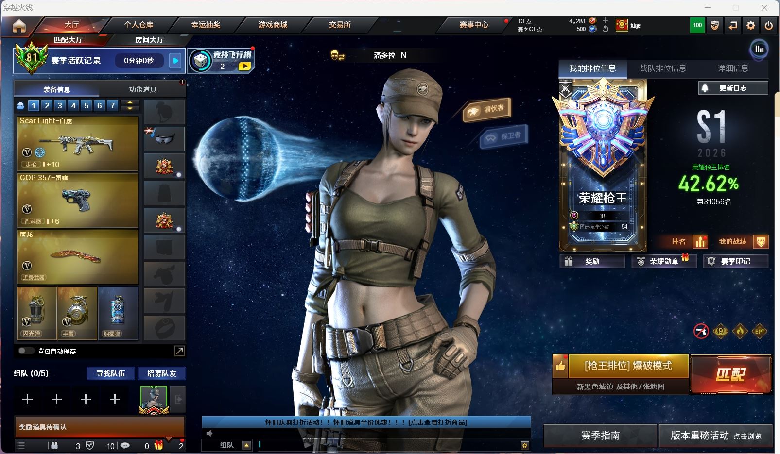 【游戏多多】 【可包人脸】ljh AK033121 河南一区 vip6 42v【四防传说影煞】【竞技荣光套】【ScarLight-白虎+音效卡+冠军之虎】【QBZ03-金色蔷薇】【生化 6烈龙 炽芒蝶刃蝴蝶刀】【火麒麟】【雷神】【5手枪 修罗 天神*2 冠军之特*2】【手雷 竞技荣光*6】【角色 暗夜x】----更多炫彩背包/光效/名片/武器具体看图!截图展示段位不代实际段位,赛季更新等不可抗拒因素发生变化、时限道具不保证所剩时间、标题未写送点券默认不送】【主播担保+安全至上+性价比 买号卖号只选金牌商家一左友】