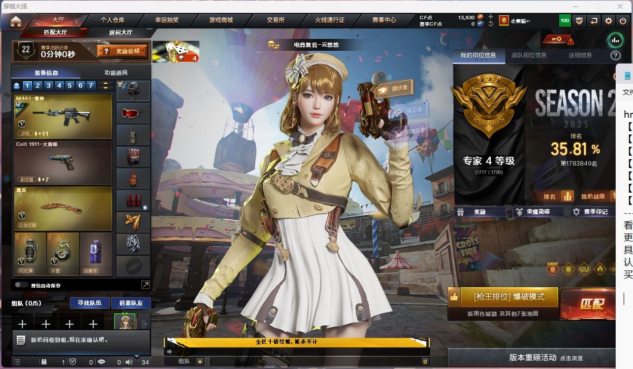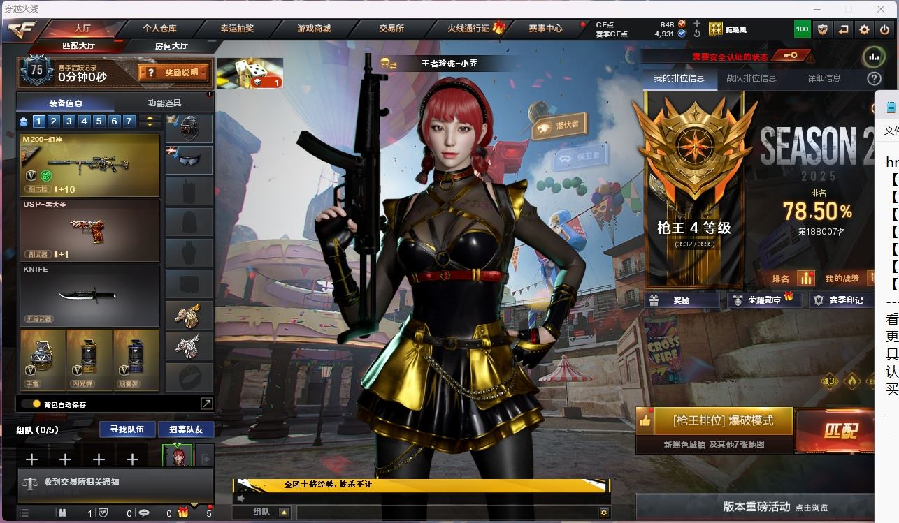 【游戏多多】 【可二次实名】hmc AK024532湖南一区14v【m200幻神】【qbz金色蔷薇】 【武器:火麒麟 雷神 玄武 凌龙 】 【手枪:天神】 【刀具:麒麟刺 屠龙】 【小人枪:雷神小红 】 【角色:乔伊教练】 ----更多炫彩背包/光效/名片/武器具体看图!截图展示段位不代实际段位,赛季更新等不可抗拒因素发生变化、时限道具不保证所剩时间、标题未写送点券默认不送】【主播担保+安全至上+性价比 买号卖号只选金牌商家一左友】