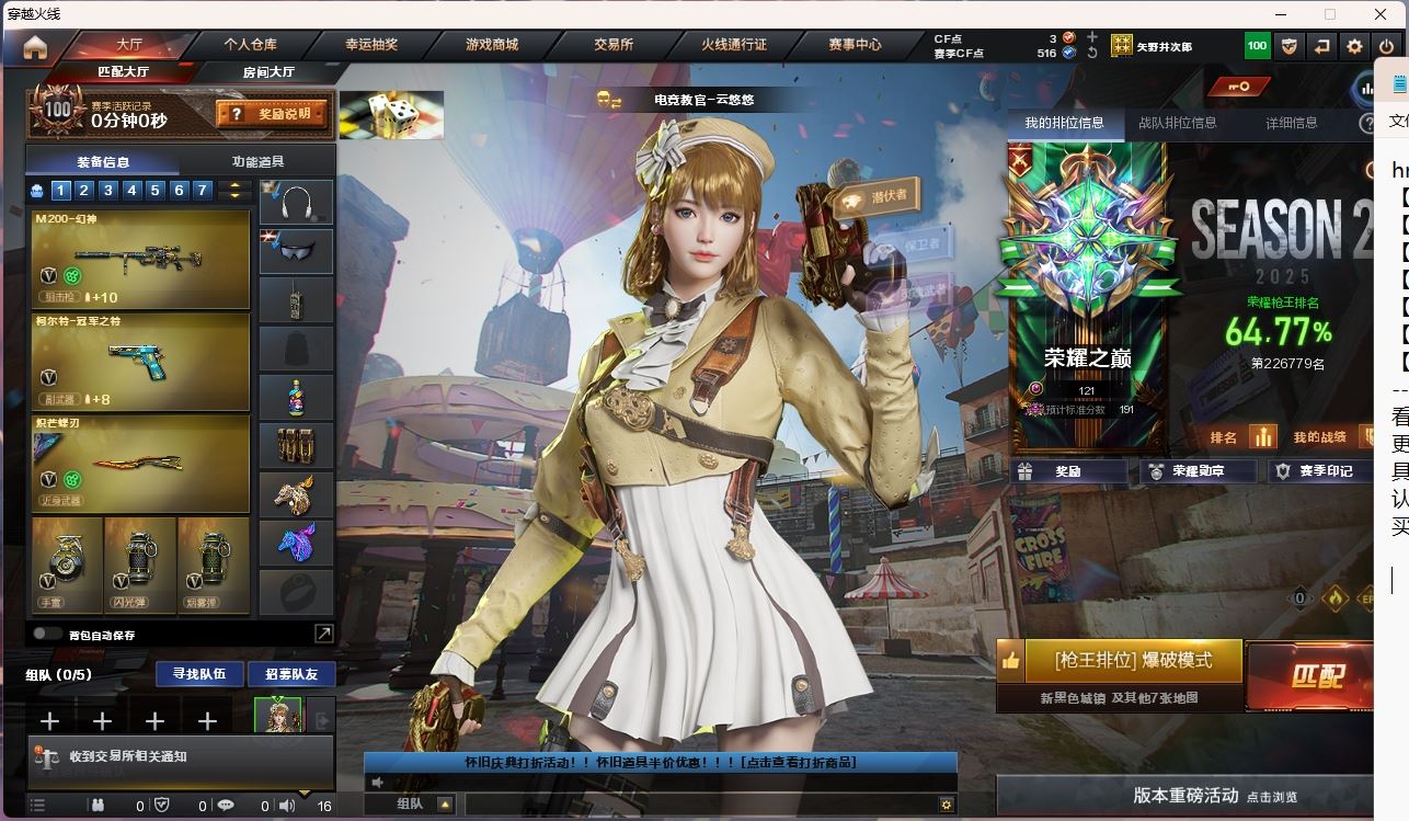 【游戏多多】 【可包人脸】hmc AK025852云南一区12v【m200竞技荣光+云悠悠】【王者风神】【g36c幻影】 【武器:火麒麟 】 【3刀具:麒麟刺 擎天竞技荣光 龙啸】 【雷套:竞技荣光雷】 【角色:云悠悠】----更多炫彩背包/光效/名片/武器具体看图!截图展示段位不代实际段位,赛季更新等不可抗拒因素发生变化、时限道具不保证所剩时间、标题未写送点券默认不送】【主播担保+安全至上+性价比 买号卖号只选金牌商家一左友】