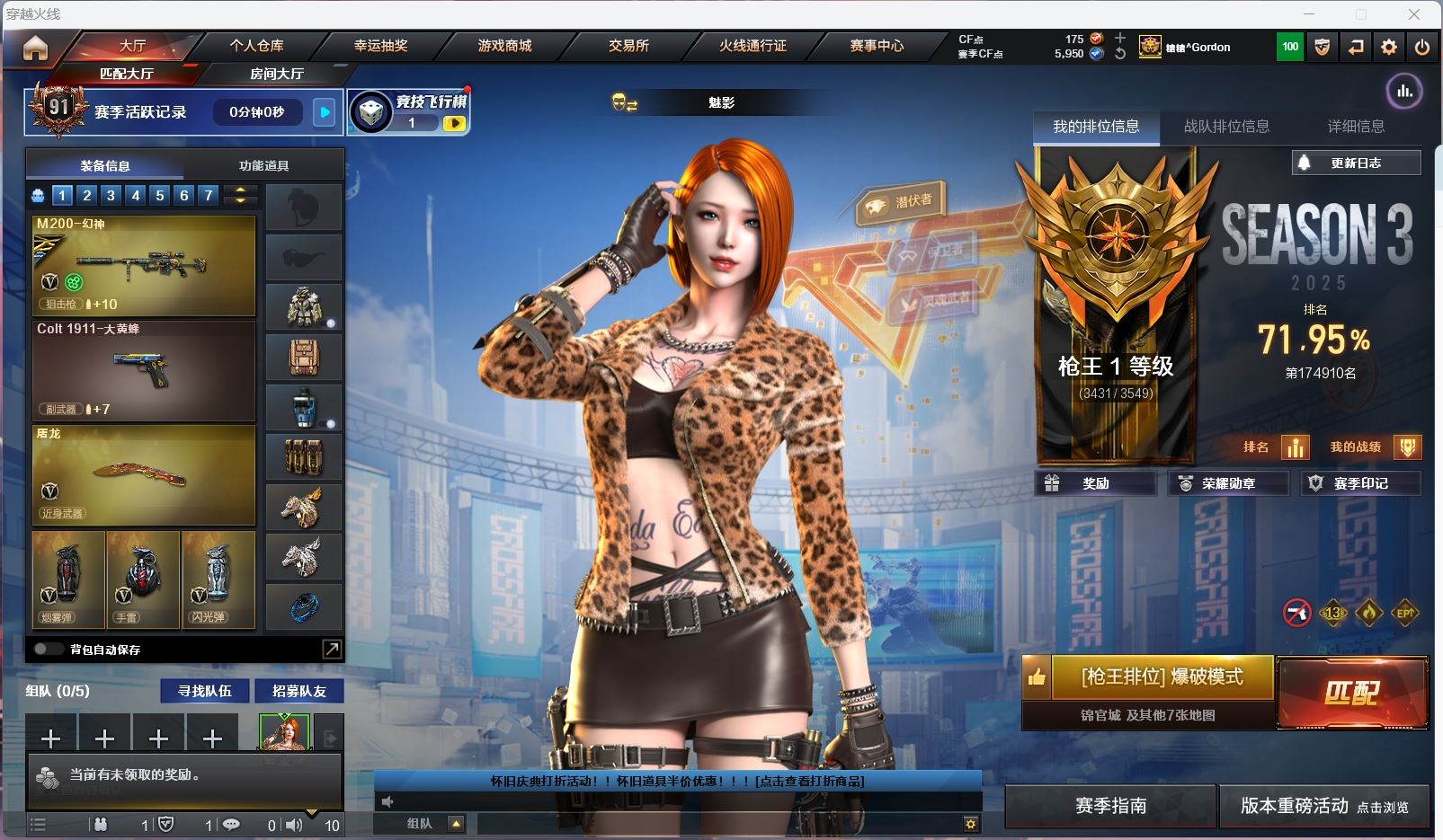 【游戏多多】 【可包人脸】ljh AK032275 河南一区 vip5 29v 【亮点解析 裁决三件套】【传说星骇】【M200-幻神】【ScarLight-白虎】【QBZ03-金色蔷薇+荣耀世冠ep】【Barrett-毁灭+巅峰荣耀】【裁决+音效卡+运输船】【M4A1-雷神】【天启】【7手枪 修罗*5 usp雷暴 usp冥王】【5近战 屠龙】【四防 职业经理】【角色 战地猎狐 修道士 云海玲珑】-----更多炫彩背包/光效/名片/武器具体看图!截图展示段位不代实际段位,赛季更新等不可抗拒因素发生变化、时限道具不保证所剩时间、标题未写送点券默认不送】【主播担保+安全至上+性价比 买号卖号只选金牌商家一左友】