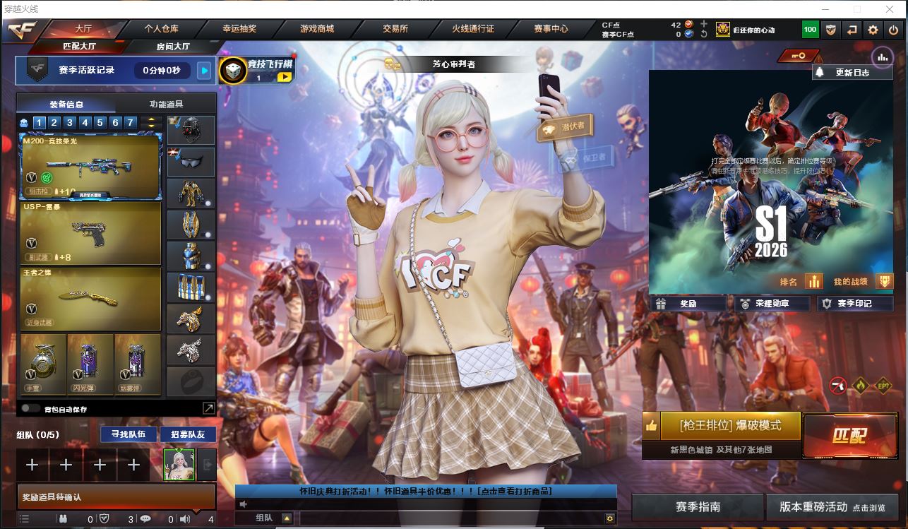 【游戏多多】 【可包人脸】ljh AK032301 江苏一区 52v 【传说女帝】【M200-幻神】【荣耀世冠套】【Barrett-毁灭】【裁决】【AK47-火麒麟+AK47-火麒麟-荣耀世冠ag】【黑龙】【M4A1-雷神+音效卡+雷神-荣耀世冠ag+雷神-冠军之魄】【天启 海王】【7手枪 修罗*2 天神*4】【9近战 屠龙 龙啸 幻灵之峰 王者之啸*2】【手雷 堕天神*2 幻灵雷】【四防 王者玲珑小乔 职业经理】-----更多炫彩背包/光效/名片/武器具体看图!截图展示段位不代实际段位,赛季更新等不可抗拒因素发生变化、时限道具不保证所剩时间、标题未写送点券默认不送】【主播担保+安全至上+性价比 买号卖号只选金牌商家一左友】