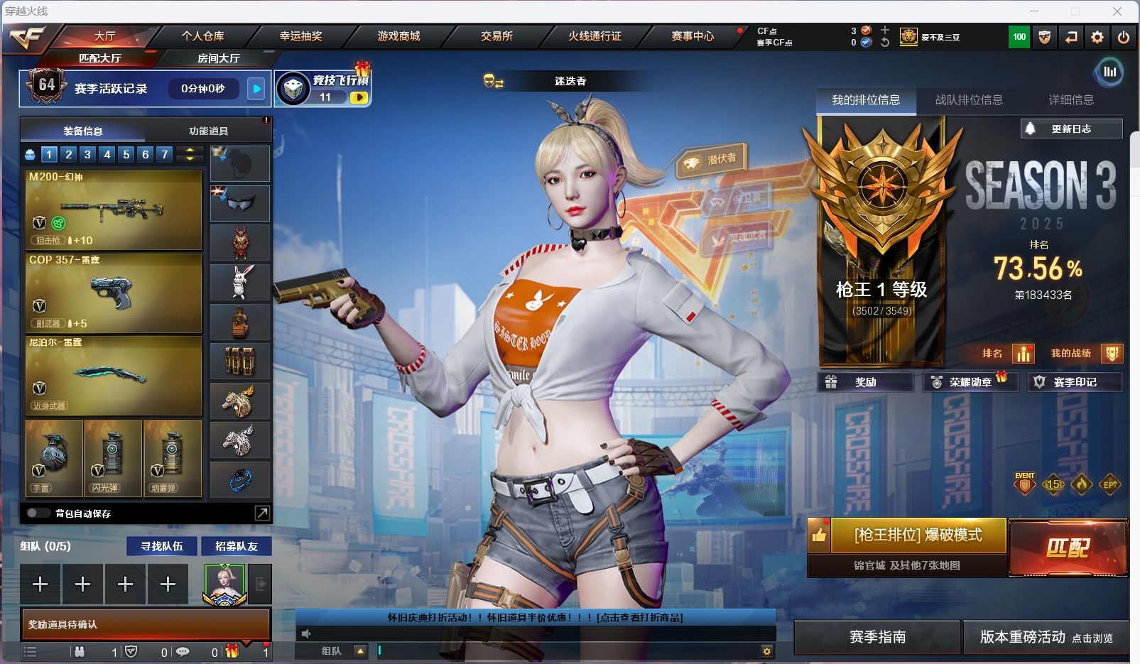 【游戏多多】 【可包人脸】ljh AK023083 四川一区 vip6 164v【亮点解析 四防女帝+幻神三件套 生化六烈+蝴蝶+黄金猫猫手套白鲨】【四防传说女帝】【M200-幻神+音效卡+幻神-AG-CFPLS17+幻神-冠军之幻】【Kar98K-星神】【王者幻神】【传说暗裔】【g36c幻影】【ScarLight-白虎】【QBZ03-金色蔷薇+音效卡】【生化 盘龙 5炼狱 6烈龙 】【裁决】【毁灭+音效卡】【极光】【雷暴套】【荣耀世冠套】【火麒麟+音效卡+火麒麟-even+火麒麟-横秒之巅】【雷神+烈虎+雷神-lgd18冠军+雷神-传奇n9+雷神-白鲨14冠军+雷神-荣耀之魄】【黑骑士+音效卡+白马银枪】【王者之心 王者之武 王者之势 王者之决】【千变 黑武士 天启 超新星 青龙 玫瑰精灵】【13手枪 修罗*4 天神*2 usp雷暴 cop堕天神】【17近战 屠龙*3 擎天 麒麟刺*6 斩神刀雷暴 云龙扇 王者之锋*2 王者之击 王者之刺】【手雷 雷暴雷*7 夜魔*7 电竞装甲 云龙雷】【四防 王者春 王者魅影 王者葵惊若翩鸿 职业经理】【幻神音效卡 QBZ03-金色蔷薇音效卡】----更多炫彩背包/光效/名片/武器具体看图!截图展示段位不代实际段位,赛季更新等不可抗拒因素发生变化、时限道具不保证所剩时间、标题未写送点券默认不送】【主播担保+安全至上+性价比 买号卖号只选金牌商家一左友】