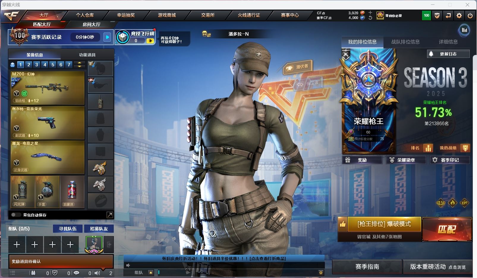 【游戏多多】 【可包人脸】ljh AK030303 四川一区 vip6 34v【亮点解析 幻神三件套】【M200-幻神+音效卡+cfs2022】【竞技荣光套+云悠悠+usp雷暴】【王者白虎】【QBZ03-金色蔷薇+音效卡+heartshot】【毁灭】【火麒麟】【雷神+heartshot】【黑骑士+音效卡】【死神】【3手枪 天神*2】【近战 屠龙】【手雷 竞技荣光】【四防 王者玲珑小乔 】【幻神音效卡 QBZ03-金色蔷薇音效卡】【哔哩哔哩名片】----更多炫彩背包/光效/名片/武器具体看图!截图展示段位不代实际段位,赛季更新等不可抗拒因素发生变化、时限道具不保证所剩时间、标题未写送点券默认不送】【主播担保+安全至上+性价比 买号卖号只选金牌商家一左友】