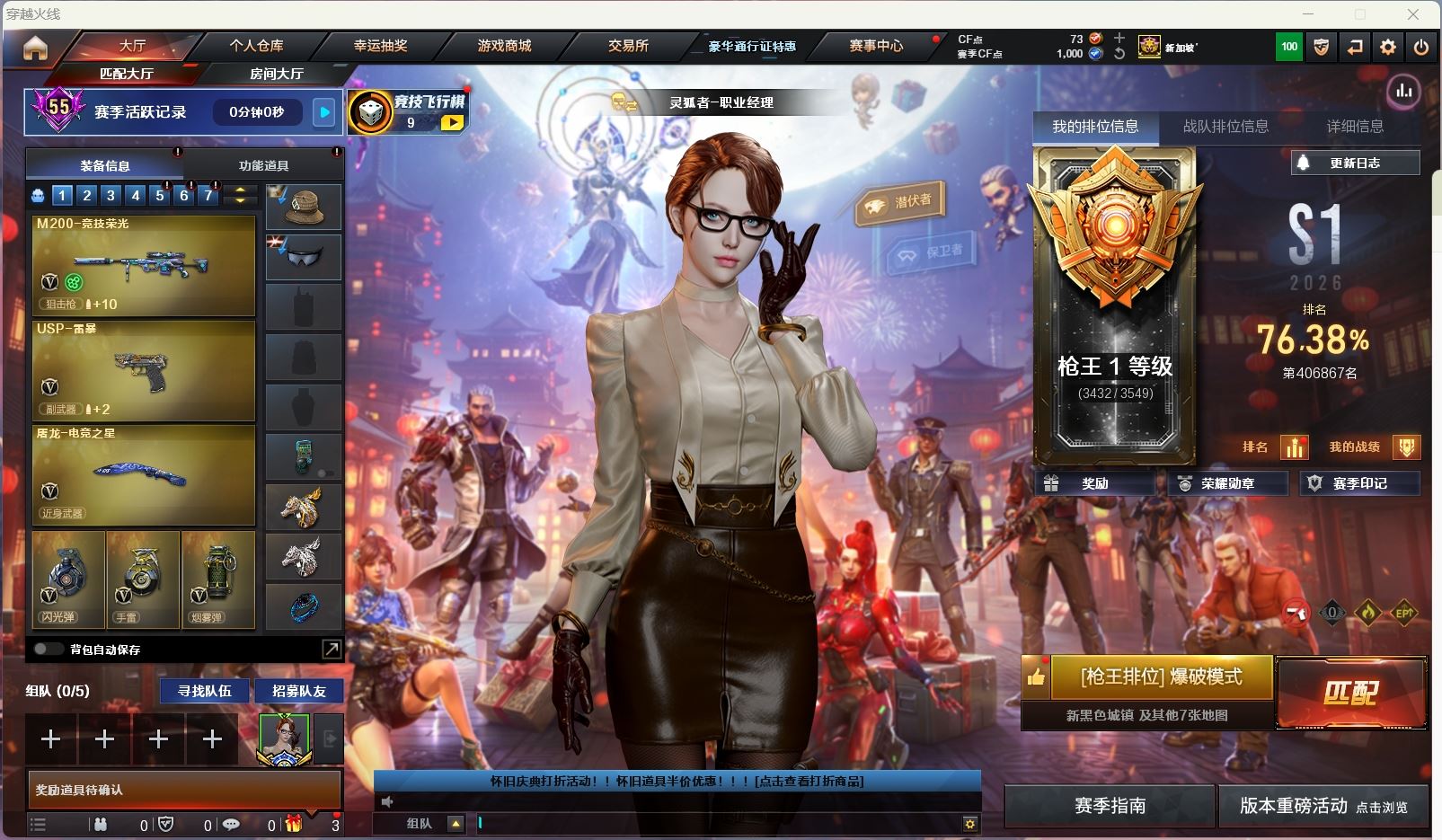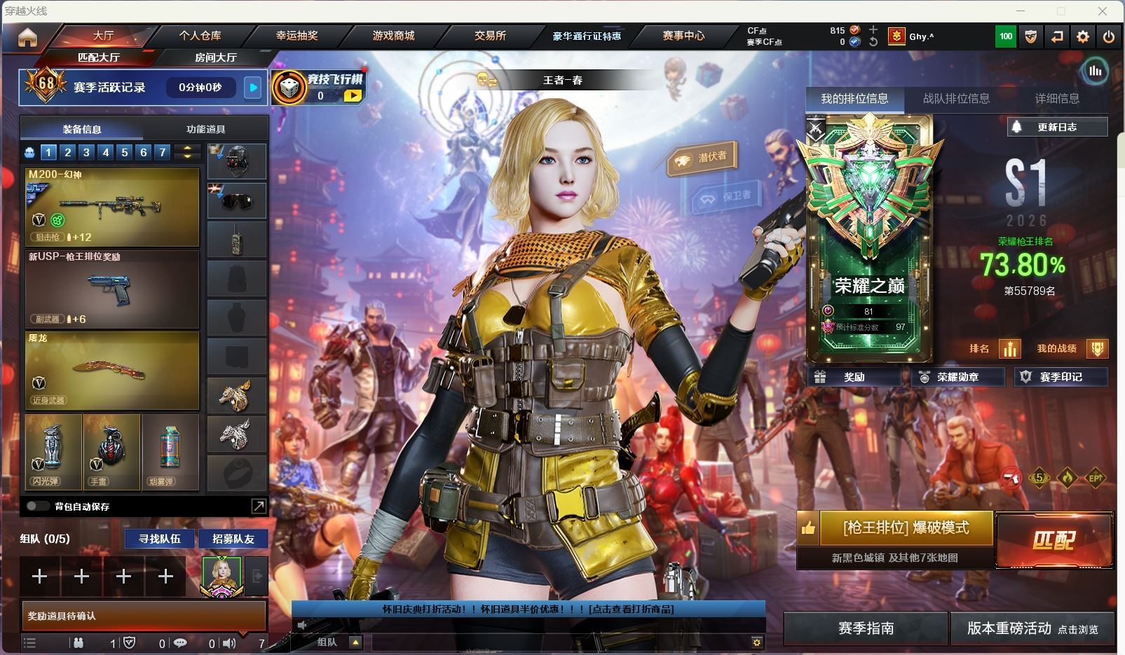【游戏多多】 【可二次实名】ljh AK033431 黑龙江区 23v【M200-竞技荣光+云悠悠+usp雷暴】【传说圣灵】【ScarLight-白虎】【Barrett-毁灭+音效卡】【M4A1-雷神】【黑骑士+白马银枪】【黑鲨】【3手枪 天神 usp雷暴 cop幻灵】【5近战 屠龙*3 擎天 王者之击】【手雷 竞技荣光】【四防 王者玲珑小乔】----更多炫彩背包/光效/名片/武器具体看图!截图展示段位不代实际段位,赛季更新等不可抗拒因素发生变化、时限道具不保证所剩时间、标题未写送点券默认不送】【主播担保+安全至上+性价比 买号卖号只选金牌商家一左友】
