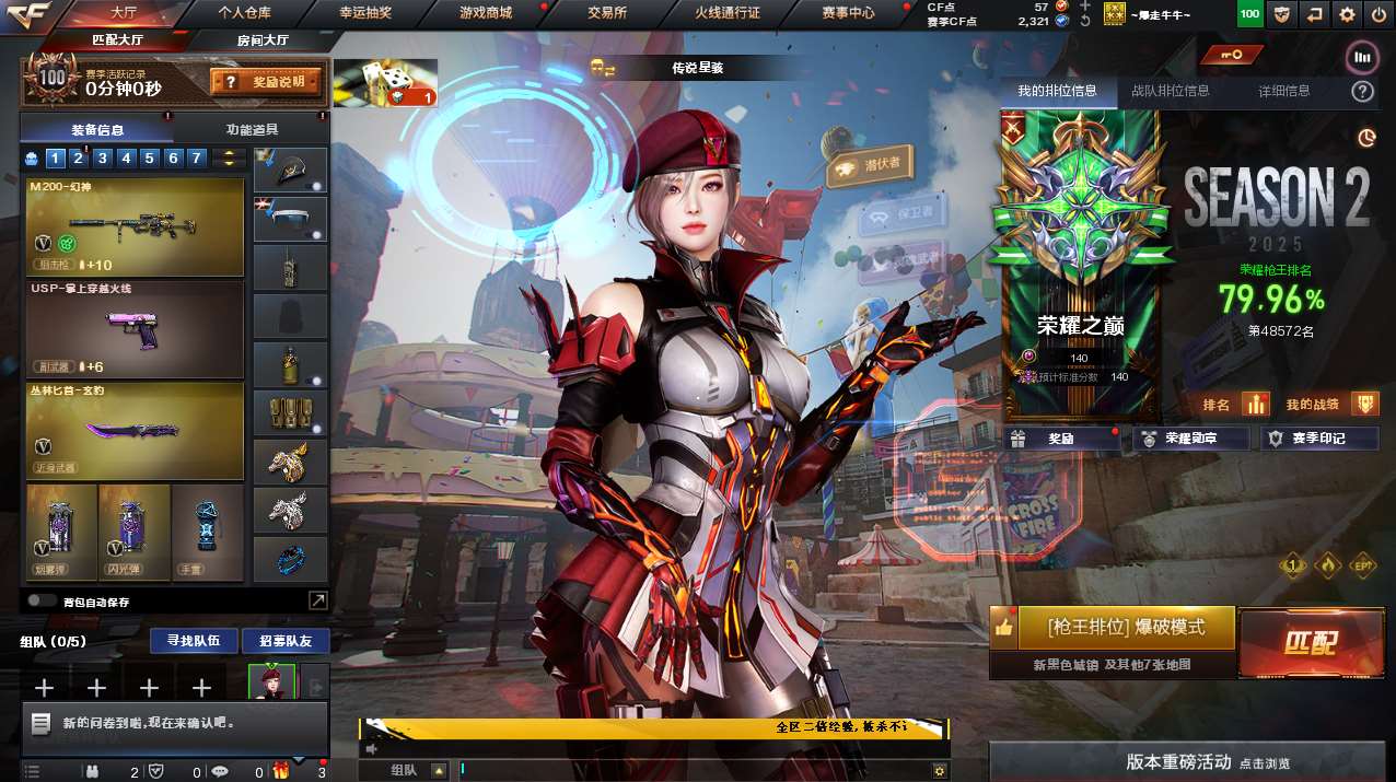 【游戏多多】 【可包人脸】cf290 19v 传说圣谕 m200幻神+竞技荣光套装+usp雷暴+m4a1苍鸣雷神/赤狱骑士+异变清道夫+2022荣耀之证+云悠悠角色