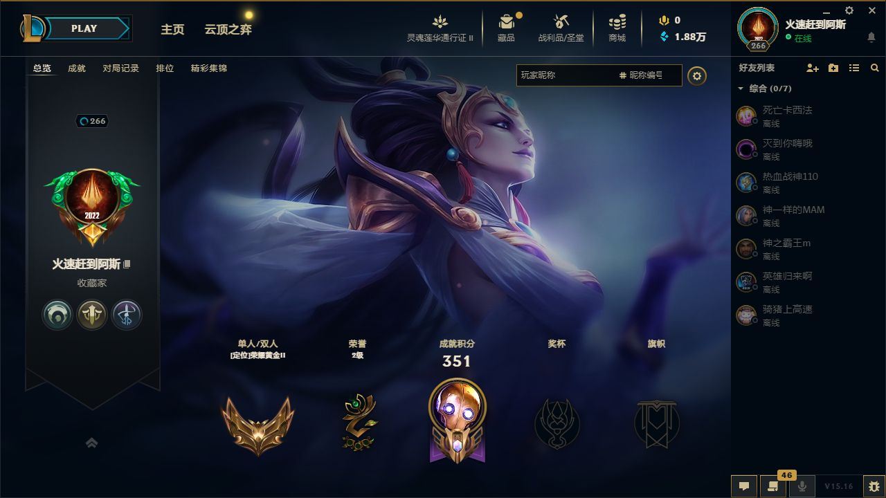 【游戏多多】 【可包人脸】ljh【找回包赔】ak013495黑色玫瑰 英雄128 皮肤160 【神话19 限定32 传说27 史诗17 炫彩60】 【神话 海克斯科技 崔丝塔娜 恐惧新星 德莱厄斯 摄魂使者 薇恩 十五周年纪念 希维尔 十周年纪念 安妮 水晶掠夺者 卡兹克 水晶圣骑 艾希 至臻 黑夜使者 凯隐 至臻 幻灵战斗猫 金克丝 至臻 魅惑女巫 莫甘娜 至臻 青花瓷 拉克丝 至臻 青花瓷 千珏 至臻 神龙尊者 炎龙瑟提 至臻 心之钢 永恩 至臻 星之守护者 艾克 至臻 星之守护者 辛德拉 至臻 至高天 奎桑提 至臻 drx 亚托克斯 至臻 k/da 伊芙琳】 -----更多炫彩背包/光效/名片/武器具体看图!截图展示段位不代实际段位,赛季更新等不可抗拒因素发生变化、时限道具不保证所剩时间、标题未写送点卷默认不送】【主播担保+安全至上+性价比 买号卖号只选金牌商家一左友】