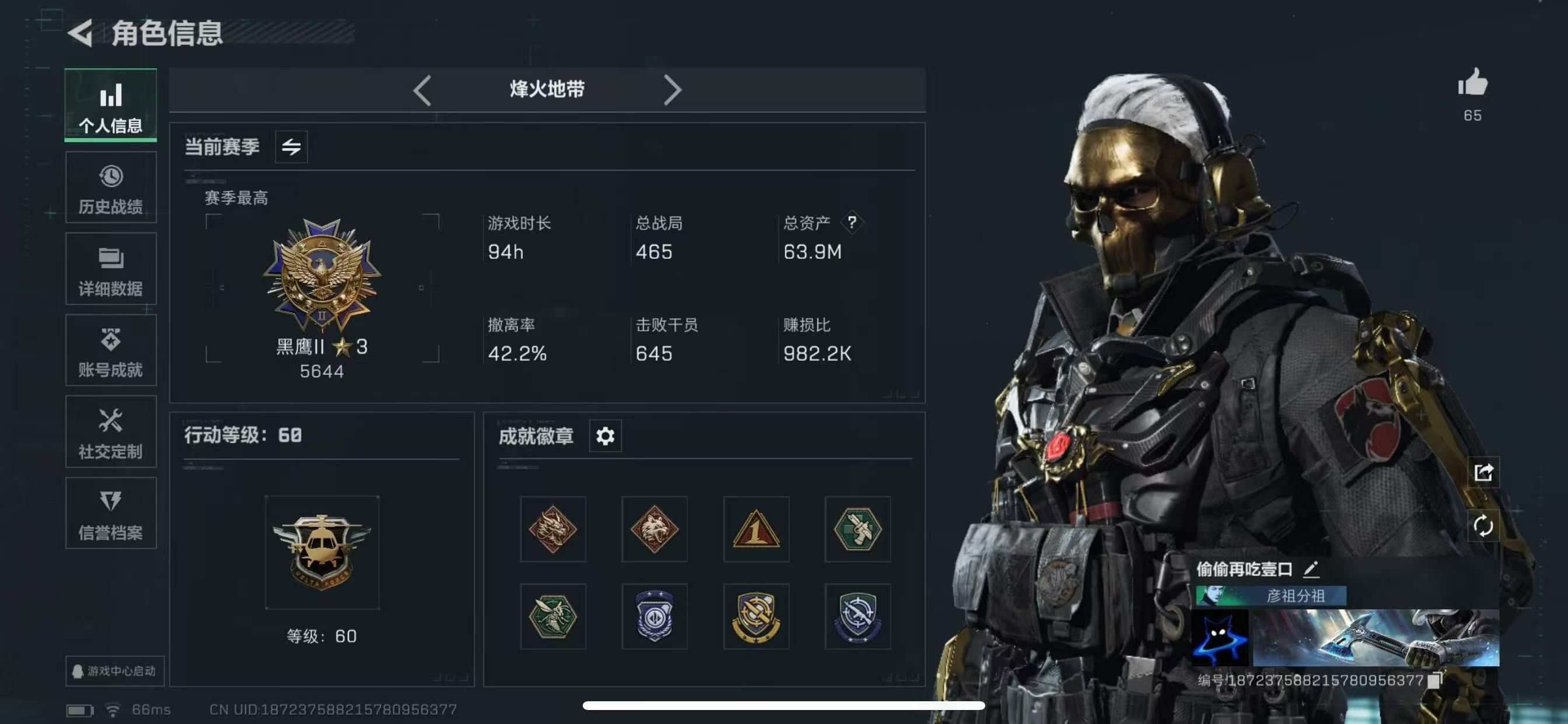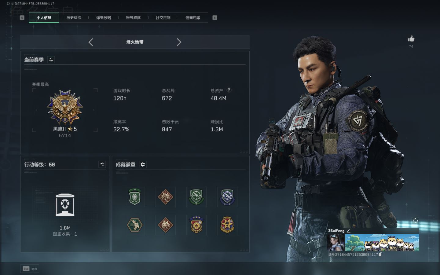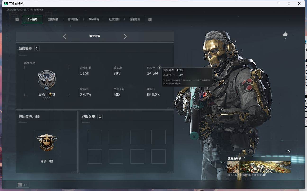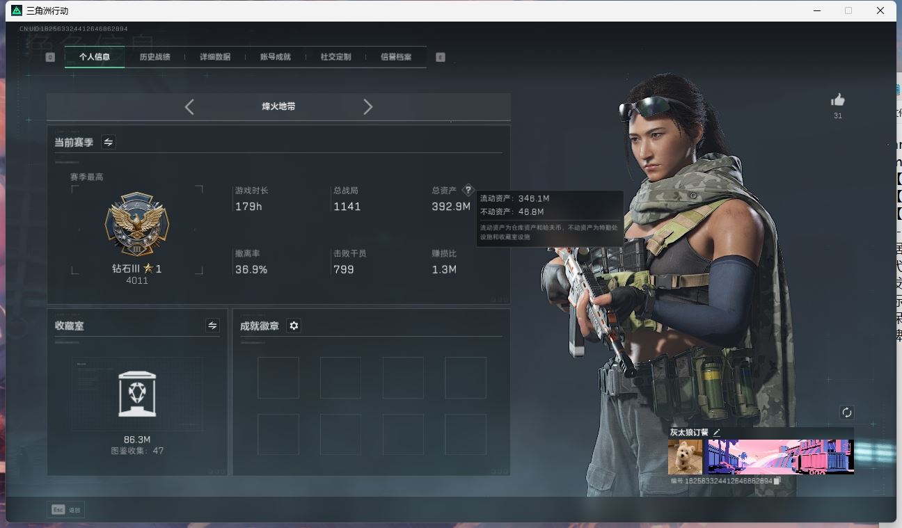 【游戏多多】 ljh AK025667 包人脸 行动等级60黑鹰 总资产48.4m【亮点解析 3*3安全箱】【M250通用机枪-几何解构ASh-12战斗步枪-鹅鸭杀0CQ171冲锋枪-鹅鸭杀0J日201轻机枪-鹅鸭杀SCAR-H战斗步枪-启航M14射手步枪-电锯惊魂G3战斗步枪-骑士AK-12突击步枪-特斯拉线园 AK-12突击步枪-特斯拉线园UZ1冲锋枪-特斯拉线园SR-3M紧凑突击步枪-特斯拉线园联动 M4A1突击步枪-阿米娅联动 勇士冲锋枪-能天使-午夜邮差腾龙突击步枪-捞点薯条AWM狙击步枪-捞点薯条 联动 CAR-15突击步枪-阿米娅联动 复合弓-黑-天际线M4A1突击步枪-蚀金玫瑰联动 725双管弹枪-送葬人-无题密令K437突击步枪-极速狂飙SMG-45冲锋枪】【近战 北极星 黑鹰】【角色皮肤 蚀金玫瑰 飞虎队 壮志凌云 夜鹰 无题密令 街头之王 黑天际线】----安全箱等时效性道具请以游戏内数据为准:详情请看图----截图展示段位不代实际段位,赛季更新等不可抗拒因素发生变化、时限道具不保证所剩时间、标题未写送三角币默认不送】【主播担保+安全至上+性价比 买号卖号只选金牌商家一左友】