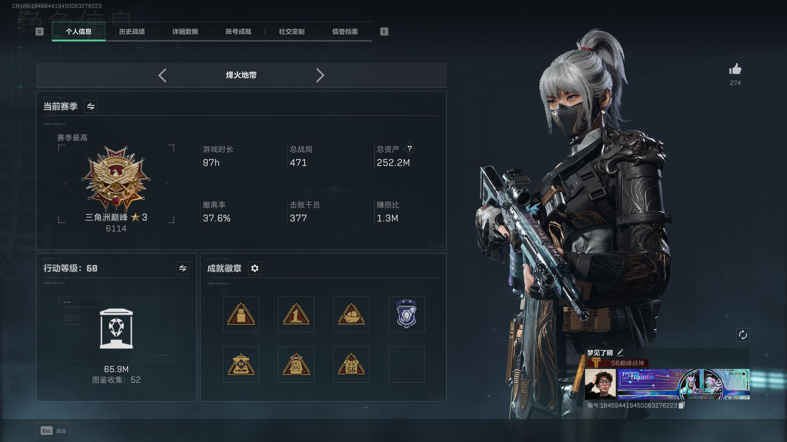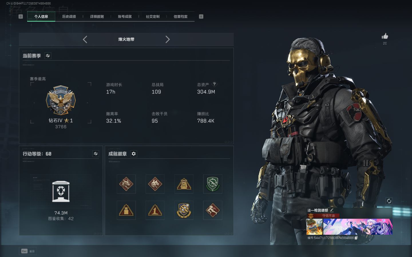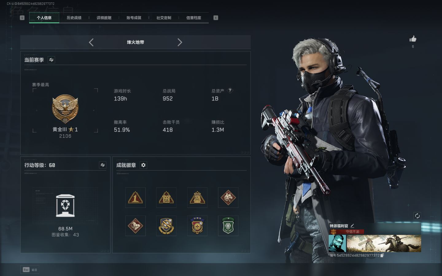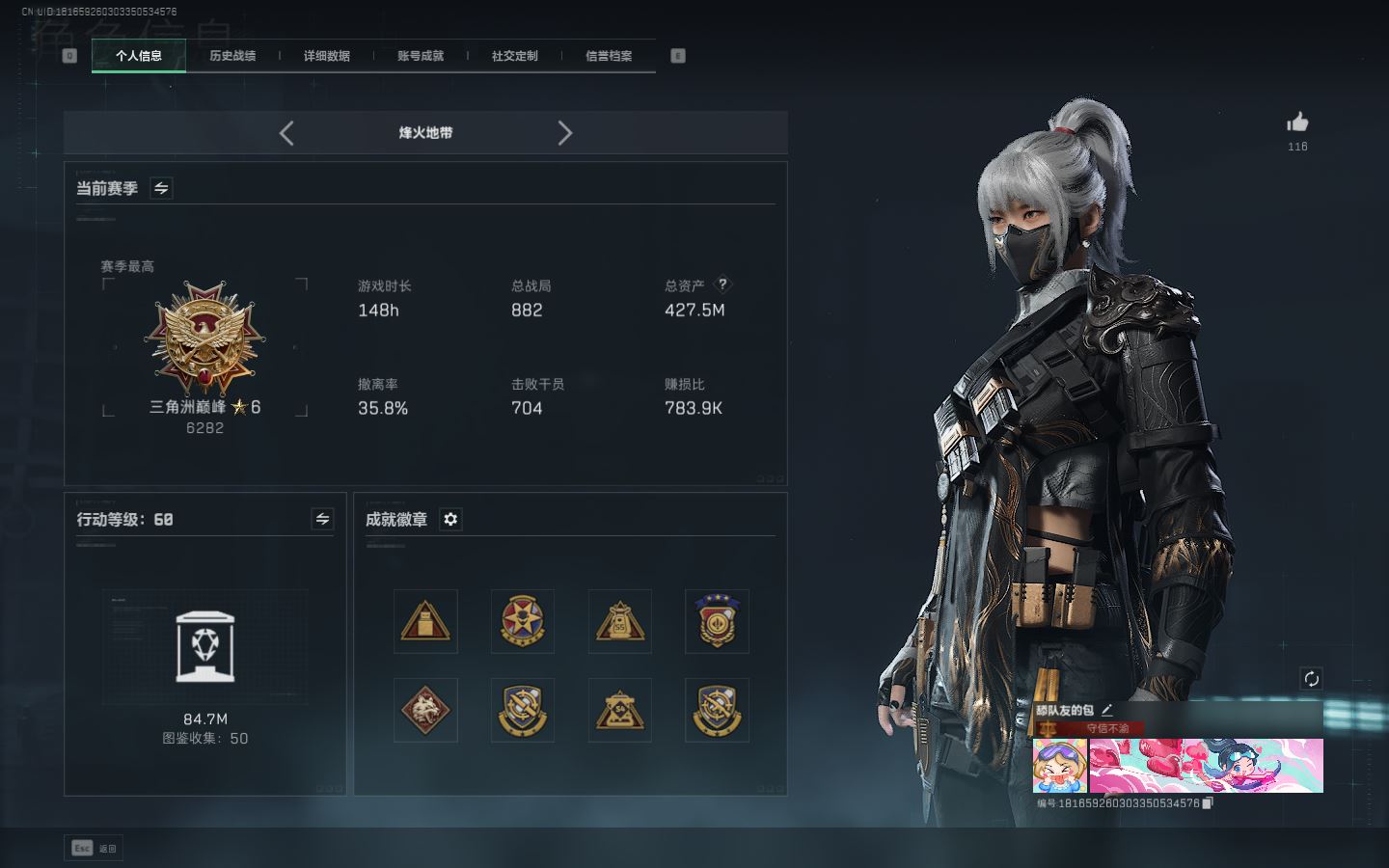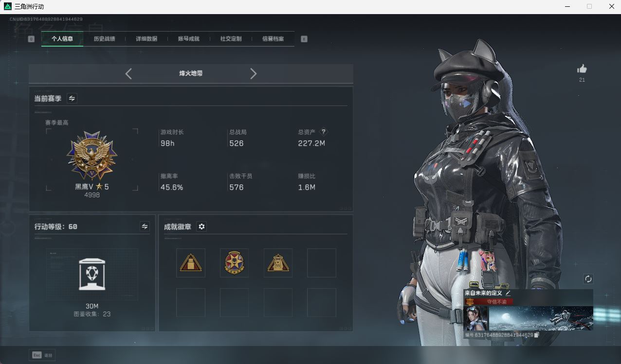 【游戏多多】 ljh AK025784 包人脸 行动等级59黑鹰 总资产129.3m【联动 R93狙击步枪-维什戴尔联动CAR-15突击步枪-阿米娅G3战斗步枪-骑士联动 M4A1突击步枪-阿米娅SCAR-H战斗步枪-启航】【近战 黑鹰】-----安全箱等时效性道具请以游戏内数据为准:详情请看图----截图展示段位不代实际段位,赛季更新等不可抗拒因素发生变化、时限道具不保证所剩时间、标题未写送三角券默认不送】【主播担保+安全至上+性价比 买号卖号只选金牌商家一左友】