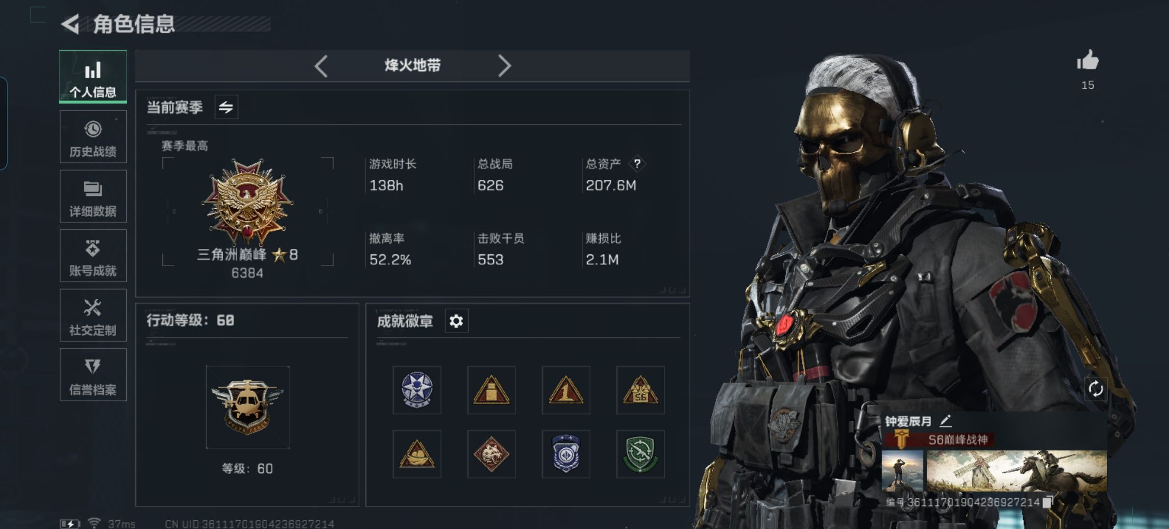 【游戏多多】 ljh AK025789 有二次 行动等级60巅峰 总资产427.5m【亮点解析 特勤处满级 3*3保险】【M4A1突击步枪-蚀金玫瑰 K437突击步枪-几何解构ASh-12战斗步枪-鹅鸭杀0CQ171冲锋枪-鹅鸭杀0J日201轻机枪-鹅鸭杀SCAR-H战斗步枪-启航联动 Vector冲锋枪-能天使G3战斗步枪-骑士M250通用机枪-骑士之心】SR-3M紧凑突击步枪-特斯拉线园联动 725双管弹枪-送葬人-无题密令M250通用机枪-骑士之心K437突击步枪-北极星0CQ171冲锋枪-北极星AK-12突击步枪-特斯拉纺UZ1冲锋枪-特斯拉线圈 联动 725双管霰弹枪-送葬人-无题密令联动 M4A1突击步枪-阿米娅联动 勇士冲锋枪-能天使-午夜邮差腾龙突击步枪-捞点薯务AWM狙击步枪-捞点薯条93R-捞点薯条联动 复合弓-黑-天际线 SMG-45冲锋枪-骑土AK-12突击步枪-夜康CAR-15突击步枪-黑腐坠落SCAR-H战斗步枪-水墨云医SCAR-H战斗步枪-铁艺芯穹SR-25射手步枪-水墨云图】 【近战 北极星 黑鹰】【角色皮肤 红狼-蚀金玫瑰 威龙-壮志凌云 蜂医-无题密令 无名-夜鹰 深蓝-不破誓约 露娜-黑天际线 骇爪-水墨云图】-----安全箱等时效性道具请以游戏内数据为准:详情请看图----截图展示段位不代实际段位,赛季更新等不可抗拒因素发生变化、时限道具不保证所剩时间、标题未写送三角券默认不送】【主播担保+安全至上+性价比 买号卖号只选金牌商家一左友】