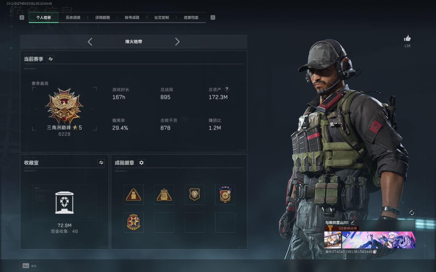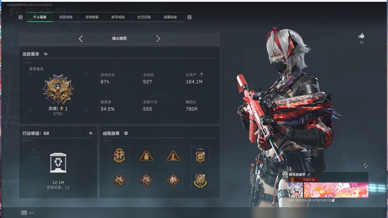【游戏多多】 ljh AK025787 包人脸 行动等级60巅峰 总资产172.3m【3*3保险】【典藏 M4A1突击步枪-棱镜攻势优品c】【联动 R93狙击步枪-维什戴尔ASh-12战斗步枪-期鸭系0CQ171冲锋枪-鹅鸭杀0J日201轻机枪-鹅鸭杀SCAR-H战斗步枪-启航G3战斗步枪-骑士M250通用机枪-骑士之心 AK-12突击步枪-特斯拉线园UZ1冲锋枪-特斯拉线园SR-3M紧凌突击步枪-特斯拉线园联动 勇士冲锋枪-能天使-午夜邮差联动 M4A1突击步枪-阿米娅腾龙突击步枪-捞点薯务AWM狙击步枪-捞点薯条 93R-捞点薯条联动 复合弓-黑-天际线联动 CAR-15突击步枪-阿米娅K437突击步枪-北极星QCQ171冲锋枪-北极星联动 725双管寂弹枪-送葬人-无题密令AK-12突击步枪-夜康CAR-15突击步枪-黑庸坠落 】【近战 北极星 黑鹰】【角色 无名-夜鹰 蜂医-无题密令 露娜-黑天际线 深蓝-不破誓约】-----安全箱等时效性道具请以游戏内数据为准:详情请看图----截图展示段位不代实际段位,赛季更新等不可抗拒因素发生变化、时限道具不保证所剩时间、标题未写送三角券默认不送】【主播担保+安全至上+性价比 买号卖号只选金牌商家一左友】