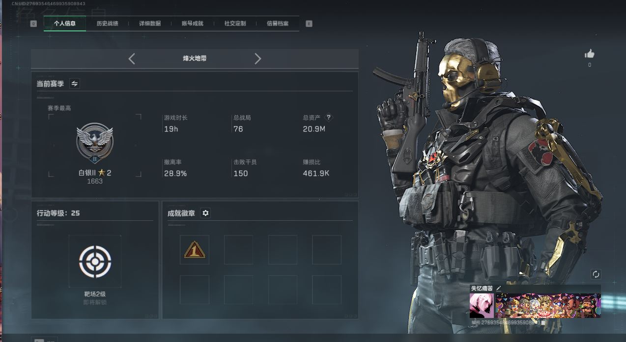 【游戏多多】 ljh AK025768 包人脸 行动等级25白银 总资产20.9m【M4A1突击步枪-蚀金玫瑰联动 R93狙击步枪-维什戴尔SCAR-H战斗步枪-启航联动 勇士冲锋枪-能天使-午夜邮差MP5冲锋枪-战术竞备SR-3M紧凑突击步抢-战术竞备SKS射手步枪-弄臣 】【近战 黑鹰】【角色皮肤 红狼-蚀金玫瑰 骇爪-维什戴尔】-----安全箱等时效性道具请以游戏内数据为准:详情请看图----截图展示段位不代实际段位,赛季更新等不可抗拒因素发生变化、时限道具不保证所剩时间、标题未写送三角币默认不送】【主播担保+安全至上+性价比 买号卖号只选金牌商家一左友】