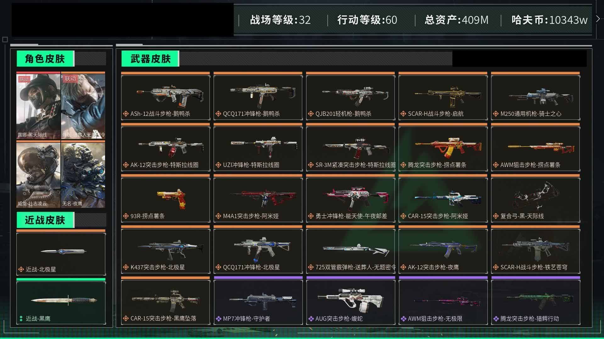 【游戏多多】 惠382225总资产409M,哈夫币10343w,枪皮数量212,战场等级:32 尉官,行动等级:60 黑鹰,角色皮肤数量4,露娜-黑天际线/蜂医-送葬人无题密令 【个人信息】战场等级:32 尉官,行动等级:60 _黑鹰 【哈夫币】10343w 【总资产】409M 【烽火地带专区】总资产200M以上 【货币】50三角币/0曼德尔币/80三角券 【安全箱】基础安全箱2(1x2)/S6高级安全箱6(2x3) 【通行证】烽火地带限定版 【特勤处】制药台Lv.3/工作台Lv.3/仓库Lv.9/防具台Lv.3/训练中心Lv.7/靶场Lv.6/技术中心Lv.3/指挥中心Lv.5/潜水中心Lv.1/收藏室Lv.1 【角色皮肤】露娜-黑天际线/威龙-壮志凌云/无名-夜鹰/蜂医-送葬人无题密令/ 【已拥有捆绑包】北极星捆绑包/捞点薯条捆绑包/特斯拉线圈捆绑包/ 【近战皮肤】近战-黑鹰/近战-北极星/ 【步枪皮肤】QBZ95-1突击步枪-曙光/AUG突击步枪-战术迷彩/SCAR-H战斗步枪-铁艺苍穹/QBZ95-1突击步枪-ACE/AUG突击步枪-蝮蛇/G3战斗步枪-战场英杰/AUG突击步枪-特勤执行/M4A1突击步枪-特勤执行/CAR-15突击步枪-黑鹰坠落/PTR-32突击步枪-ACE/AK-12突击步枪-夜鹰/SG552突击步枪-深海恐惧/SG552突击步枪-尖端治疗/AS Val突击步枪-尖端治疗/ASh-12战斗步枪-守夜人/AKM突击步枪-林中猎手/PTR-32突击步枪-英雄/K437突击步枪-北极星/腾龙突击步枪-无垢/M16A4突击步枪-竞赛选手/SR-3M紧凑突击步枪-荒野求生/CAR-15突击步枪-阿米娅/M4A1突击步枪-阿米娅/腾龙突击步枪-捞点薯条/AK-12突击步枪-特斯拉线圈/SR-3M紧凑突击步枪-特斯拉线圈/腾龙突击步枪-猎鳄行动/ASh-12战斗步枪-鹅鸭杀/SCAR-H战斗步枪-启航/ 【冲锋枪皮肤】UZI冲锋枪-特斯拉线圈/Vector冲锋枪-阿萨拉文明/Vector冲锋枪-红色彗星/勇士冲锋枪-深海恐惧/QCQ171冲锋枪-北极星/MP7冲锋枪-无垢/勇士冲锋枪-能天使-午夜邮差/P90冲锋枪-紧急戒备/MP7冲锋枪-守护者/勇士冲锋枪-工业狂潮/QCQ171冲锋枪-鹅鸭杀/ 【霰弹枪皮肤】S12K霰弹枪-曙光/M1014霰弹枪-林中猎手/725双管霰弹枪-送葬人-无题密令/ 【轻机枪皮肤】PKM通用机枪-蝮蛇/PKM通用机枪-英雄/PKM通用机枪-守夜人/PKM通用机枪-荒野求生/M250通用机枪-囚徒/QJB201轻机枪-OldHabits/M250通用机枪-骑士之心/QJB201轻机枪-鹅鸭杀/ 【精准射手步枪皮肤】SKS射手步枪-ACE/M14射手步枪-黑鹰坠落/SR-25射手步枪-尖端治疗/PSG-1射手步枪-无垢/ 【狙击步枪皮肤】SVD狙击步枪-阿萨拉工艺/SV-98狙击步枪-囚徒/M700狙击步枪-蝮蛇/SVD狙击步枪-暗夜猎手/M700狙击步枪-守夜人/SV-98狙击步枪-林中猎手/SVD狙击步枪-荒野求生/AWM狙击步枪-捞点薯条/ 【手枪皮肤】沙漠之鹰-曙光/93R-博士/93R-捞点薯条/ 【特殊武器】复合弓-黑-天际线/ 【挂饰】挂饰-磁吸炸弹/挂饰-枪匠/麦小鼠/诡影狙击兵/诡影喷火兵/挂饰-大白鹅/挂饰-启程/挂饰-王牌座驾/挂饰-小羊/挂饰-彩蛋/阿萨拉机枪兵/阿萨拉喷火兵/阿萨拉盾兵/挂饰-北极星/阿萨拉霰弹兵/阿萨拉狙击兵/挂饰-晶石幻想/挂饰-阿米娅/挂饰-来点薯条/挂饰-特斯拉线圈/阿萨拉徽章/紧急会议/ 【载具】M1A4坦克-黑骑士/M1A4坦克-烈焰/步战车-黑骑士/步战车-卦象/防空车-黑骑士/防空车-卦象/突击直升机-黑骑士/侦察直升机-卦象/ (典藏皮肤颜色请以典藏展示为准,安全箱等时效性道具请以游戏内数据为准)
