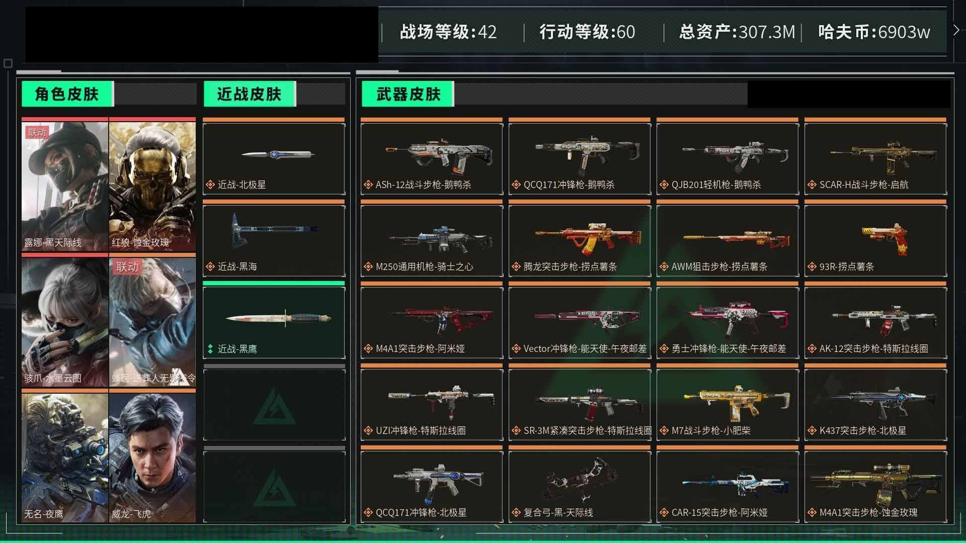 【游戏多多】 惠3656985总资产307M,哈夫币6903w,枪皮数量200,战场等级:42 上等兵,行动等级:60 黑鹰,角色皮肤数量6,露娜-黑天际线/红狼-蚀金玫瑰/骇爪-水墨云图 【个人信息】战场等级:42 上等兵,行动等级:60 _黑鹰 【哈夫币】6903w 【总资产】307M 【烽火地带专区】总资产200M以上 【货币】57三角币/0曼德尔币/80三角券 【安全箱】基础安全箱2(1x2)/S6高级安全箱6(2x3)/S6顶级安全箱9(3x3) 【通行证】烽火地带限定版 【特勤处】制药台Lv.3/工作台Lv.3/仓库Lv.8/防具台Lv.3/训练中心Lv.6/靶场Lv.5/技术中心Lv.3/指挥中心Lv.5/潜水中心Lv.0/收藏室Lv.1 【角色皮肤】露娜-黑天际线/骇爪-水墨云图/红狼-蚀金玫瑰/威龙-飞虎/无名-夜鹰/蜂医-送葬人无题密令/ 【已拥有捆绑包】黑海捆绑包/北极星捆绑包/捞点薯条捆绑包/特斯拉线圈捆绑包/ 【近战皮肤】近战-黑鹰/近战-黑海/近战-北极星/ 【步枪皮肤】M4A1突击步枪-蚀金玫瑰/QBZ95-1突击步枪-曙光/ASh-12战斗步枪-飓风行动/SCAR-H战斗步枪-水墨云图/AUG突击步枪-蝮蛇/AK-12突击步枪-夜鹰/SG552突击步枪-深海恐惧/SG552突击步枪-尖端治疗/AS Val突击步枪-尖端治疗/ASh-12战斗步枪-守夜人/AKM突击步枪-林中猎手/M14射手步枪-工业审判/PTR-32突击步枪-英雄/K437突击步枪-北极星/AS Val突击步枪-典狱官/腾龙突击步枪-无垢/SCAR-H战斗步枪-囚徒/M16A4突击步枪-竞赛选手/SR-3M紧凑突击步枪-荒野求生/CAR-15突击步枪-阿米娅/M4A1突击步枪-阿米娅/M7战斗步枪-小肥柴/腾龙突击步枪-捞点薯条/AK-12突击步枪-特斯拉线圈/SR-3M紧凑突击步枪-特斯拉线圈/PTR-32突击步枪-OldHabits/腾龙突击步枪-猎鳄行动/ASh-12战斗步枪-鹅鸭杀/SCAR-H战斗步枪-启航/ 【冲锋枪皮肤】UZI冲锋枪-特斯拉线圈/Vector冲锋枪-阿萨拉文明/MP7冲锋枪-原型机/MP5冲锋枪-黑海/MP5冲锋枪-深海恐惧/勇士冲锋枪-深海恐惧/SMG45冲锋枪-骑士/QCQ171冲锋枪-北极星/MP7冲锋枪-无垢/勇士冲锋枪-能天使-午夜邮差/Vector冲锋枪-能天使-午夜邮差/P90冲锋枪-紧急戒备/MP7冲锋枪-守护者/勇士冲锋枪-工业狂潮/QCQ171冲锋枪-鹅鸭杀/ 【霰弹枪皮肤】M870霰弹枪-飓风行动/M1014霰弹枪-潜袭者/M1014霰弹枪-林中猎手/725双管霰弹枪-送葬人-无题密令/ 【轻机枪皮肤】PKM通用机枪-蝮蛇/QJB201轻机枪-黑海/PKM通用机枪-守夜人/PKM通用机枪-荒野求生/M250通用机枪-囚徒/QJB201轻机枪-OldHabits/M250通用机枪-骑士之心/QJB201轻机枪-鹅鸭杀/ 【精准射手步枪皮肤】PSG-1射手步枪-原型机/SR-25射手步枪-尖端治疗/PSG-1射手步枪-无垢/ 【狙击步枪皮肤】SVD狙击步枪-阿萨拉工艺/M700狙击步枪-竞技风/SV-98狙击步枪-囚徒/M700狙击步枪-蝮蛇/SVD狙击步枪-暗夜猎手/M700狙击步枪-守夜人/SV-98狙击步枪-林中猎手/AWM狙击步枪-私人定制/SVD狙击步枪-荒野求生/AWM狙击步枪-捞点薯条/SV-98狙击步枪-猎鳄行动/ 【手枪皮肤】沙漠之鹰-曙光/93R-捞点薯条/ 【特殊武器】复合弓-黑-天际线/ 【挂饰】挂饰-磁吸炸弹/挂饰-枪匠/牛角威龙/挂饰-维什戴尔/挂饰-大白鹅/挂饰-启程/挂饰-水墨云图/挂饰-蚀金玫瑰/挂饰-黑海/低音艺术家/挂饰-小羊/挂饰-彩蛋/阿萨拉机枪兵/挂饰-北极星/挂饰-晶石幻想/挂饰-阿米娅/挂饰-来点薯条/挂饰-特斯拉线圈/紧急会议/ 【载具】M1A4坦克-丛林猎手/M1A4坦克-紫电/防空车-警戒线/轮式突击炮-紫电/突击直升机-紫电/侦察直升机-紫电/全地形车-纷争/全地形车-警戒线/GTQ35坦克-紫电/ (典藏皮肤颜色请以典藏展示为准,安全箱等时效性道具请以游戏内数据为准)