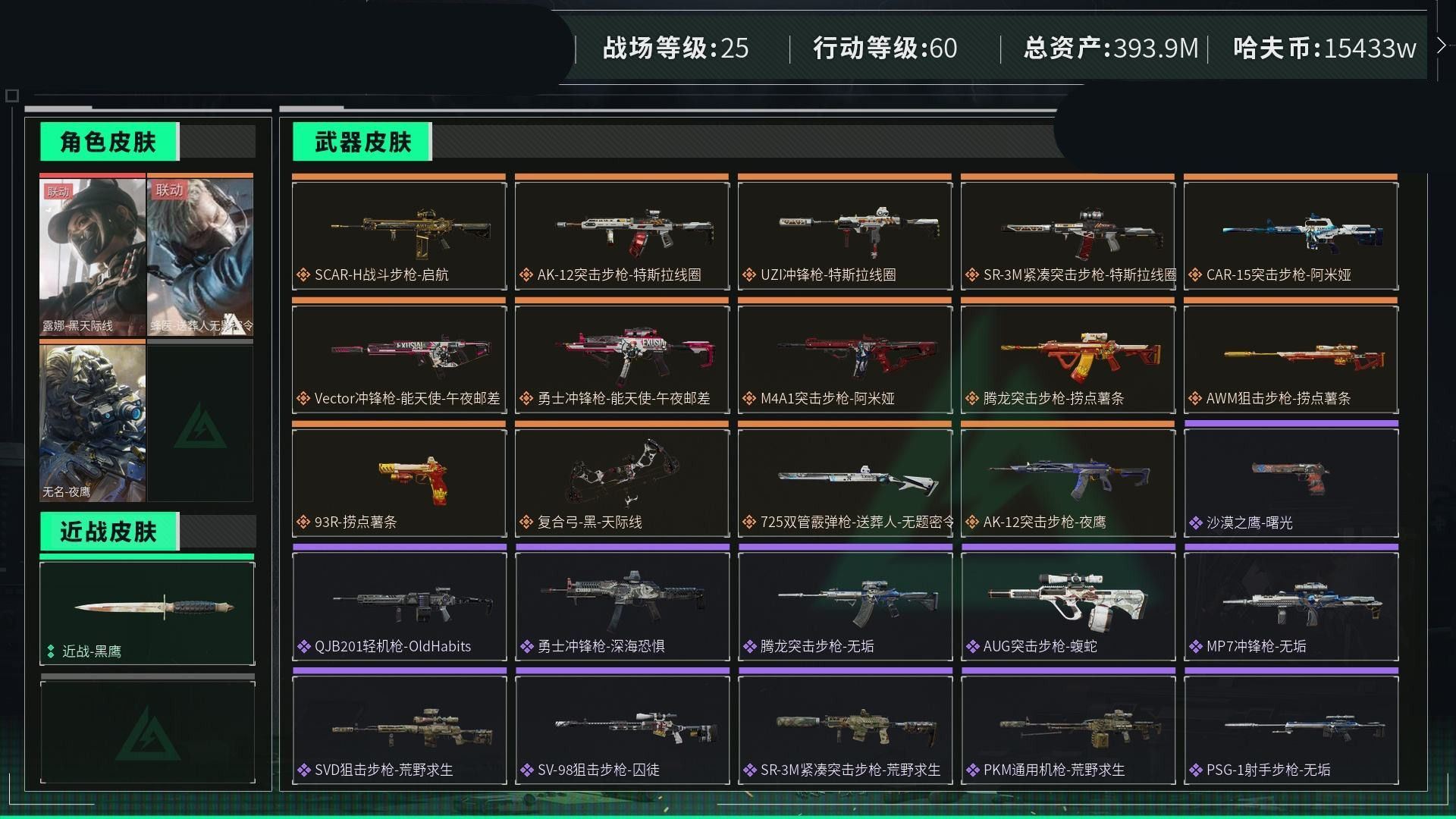 【游戏多多】 汤36072总资产393M,哈夫币15433w,露娜-黑天际线/蜂医-送葬人无题密令/无名-夜鹰,枪皮数量141,战场等级:25 上等兵,行动等级:60 铂金,近战-黑鹰,安全箱等时效性道具请以游戏内数据为准;详情请看图【个人信息】战场等级:25 上等兵,行动等级:60 铂金【哈夫币】15433w【总资产】393M【烽火地带专区】总资产200M以上【货币】24三角币/7曼德尔币/120三角券【安全箱】基础安全箱2(1x2)【通行证】通行证免费版【特勤处】制药台Lv.3/工作台Lv.3/仓库Lv.8/防具台Lv.3/训练中心Lv.6/靶场Lv.6/技术中心Lv.3/指挥中心Lv.5/潜水中心Lv.2/收藏室Lv.1【仓库】非洲之心/【角色皮肤】露娜-黑天际线/无名-夜鹰/蜂医-送葬人无题密令/【已拥有捆绑包】捞点薯条捆绑包/特斯拉线圈捆绑包/【近战皮肤】近战-黑鹰/【步枪皮肤】ASh-12战斗步枪-飓风行动/AUG突击步枪-蝮蛇/AK-12突击步枪-夜鹰/SG552突击步枪-深海恐惧/SG552突击步枪-尖端治疗/AS Val突击步枪-尖端治疗/ASh-12战斗步枪-守夜人/AKM突击步枪-林中猎手/PTR-32突击步枪-英雄/AS Val突击步枪-典狱官/腾龙突击步枪-无垢/SCAR-H战斗步枪-囚徒/M16A4突击步枪-竞赛选手/SR-3M紧凑突击步枪-荒野求生/CAR-15突击步枪-阿米娅/M4A1突击步枪-阿米娅/腾龙突击步枪-捞点薯条/AK-12突击步枪-特斯拉线圈/SR-3M紧凑突击步枪-特斯拉线圈/SCAR-H战斗步枪-启航/【冲锋枪皮肤】UZI冲锋枪-特斯拉线圈/MP5冲锋枪-深海恐惧/勇士冲锋枪-深海恐惧/MP7冲锋枪-无垢/勇士冲锋枪-能天使-午夜邮差/Vector冲锋枪-能天使-午夜邮差/【霰弹枪皮肤】M1014霰弹枪-林中猎手/725双管霰弹枪-送葬人-无题密令/【轻机枪皮肤】PKM通用机枪-守夜人/PKM通用机枪-荒野求生/M250通用机枪-囚徒/QJB201轻机枪-OldHabits/【精准射手步枪皮肤】SR-25射手步枪-尖端治疗/PSG-1射手步枪-无垢/【狙击步枪皮肤】SV-98狙击步枪-囚徒/SVD狙击步枪-暗夜猎手/M700狙击步枪-守夜人/SV-98狙击步枪-林中猎手/SVD狙击步枪-荒野求生/AWM狙击步枪-捞点薯条/【手枪皮肤】沙漠之鹰-曙光/93R-捞点薯条/【特殊武器】复合弓-黑-天际线/【挂饰】挂饰-枪匠/挂饰-启程/演出导演/重装记者/挂饰-小羊/挂饰-彩蛋/阿萨拉机枪兵/阿萨拉喷火兵/阿萨拉盾兵/阿萨拉霰弹兵/阿萨拉狙击兵/挂饰-晶石幻想/挂饰-阿米娅/挂饰-来点薯条/挂饰-特斯拉线圈/阿萨拉徽章/(典藏皮肤颜色请以典藏展示为准,安全箱等时效性道具请以游戏内数据为准)