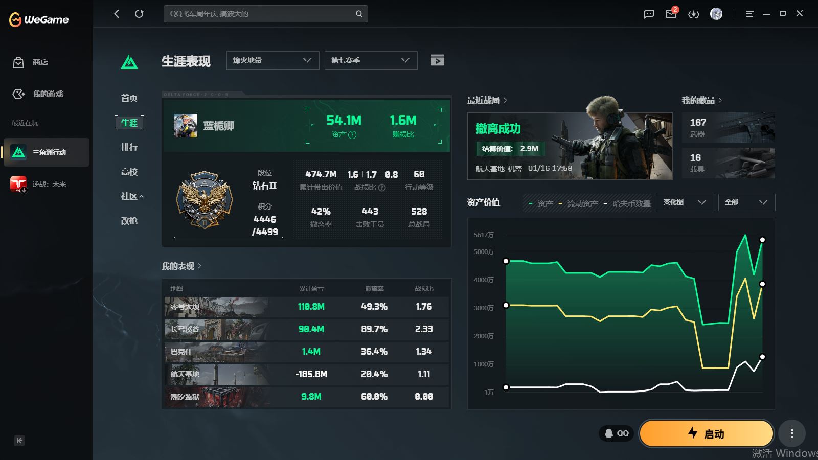 【游戏多多】 ff4427 三角洲Q 行动等级60级总资产54M【优品B腾龙优品BM7】【信条电锯】露娜金牌红狼电锯多枪皮