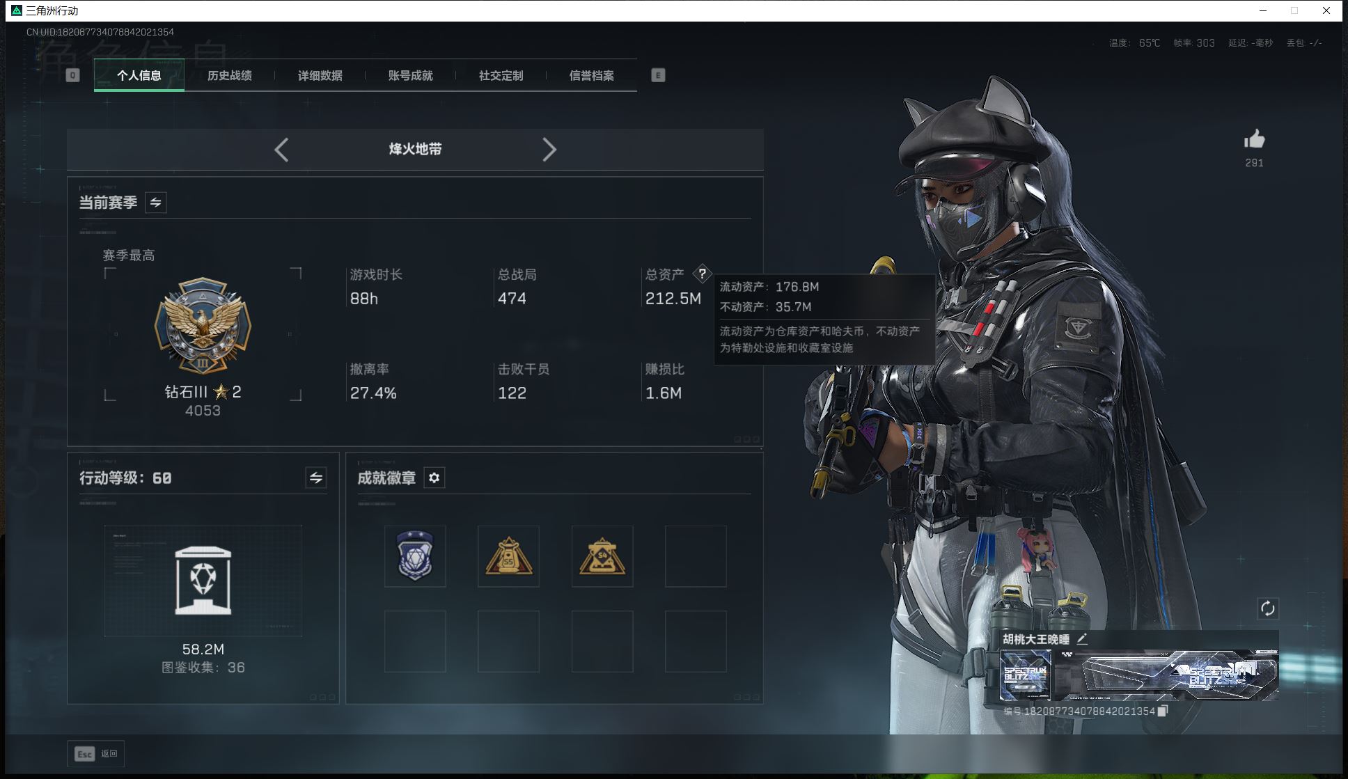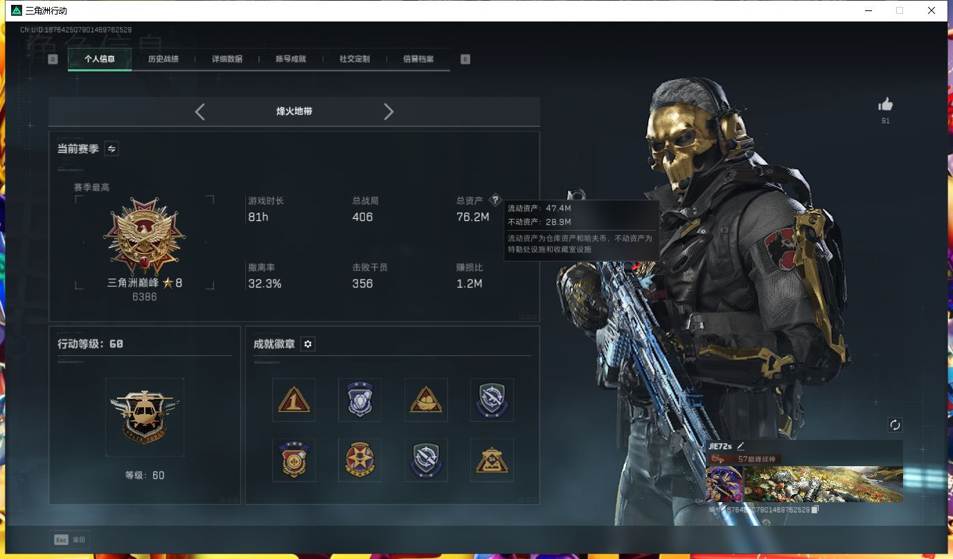 【游戏多多】 ff4399 三角洲Q 行动等级60级总资产29M【信条北极星M7优品CK416优品B】骇爪水墨红狼电锯蜂医送葬人不破深蓝露娜金牌多枪皮