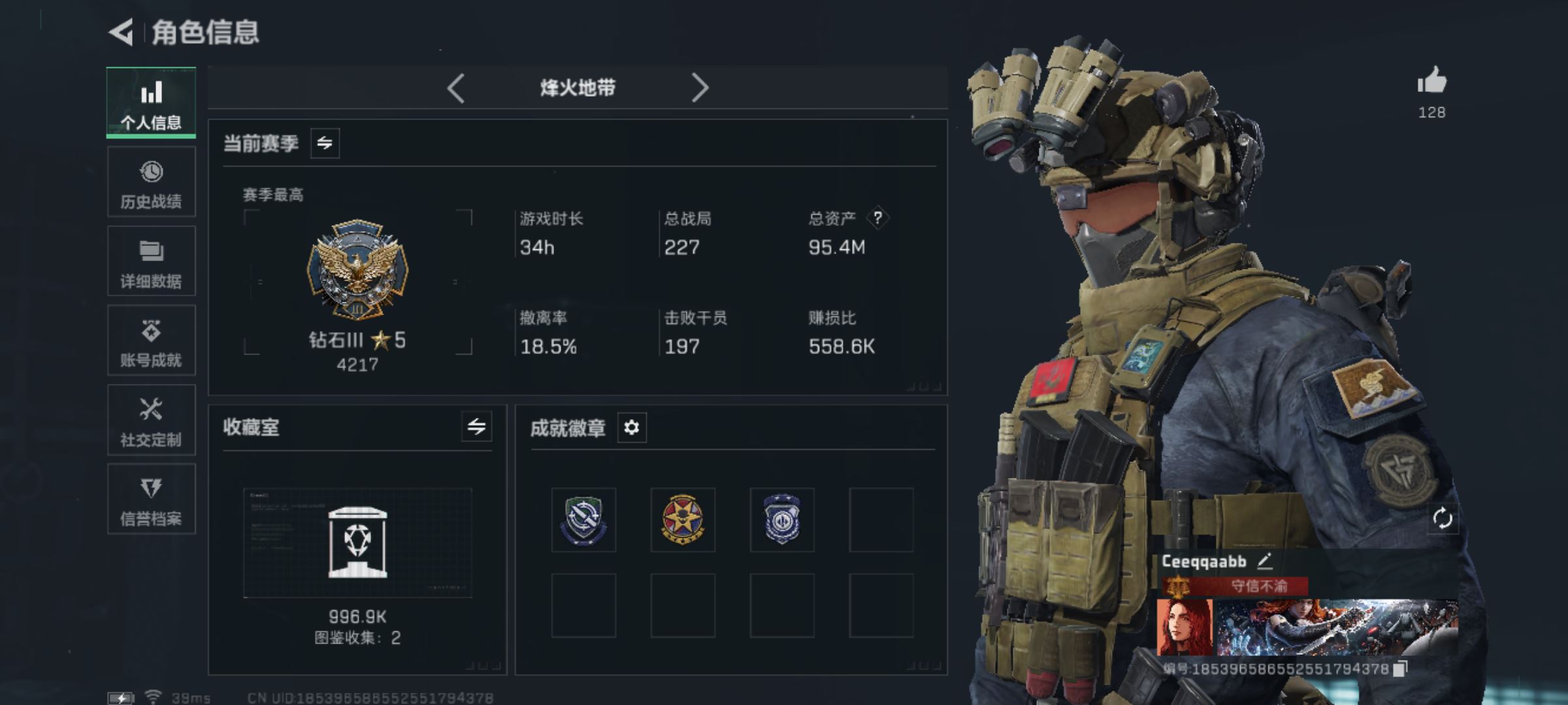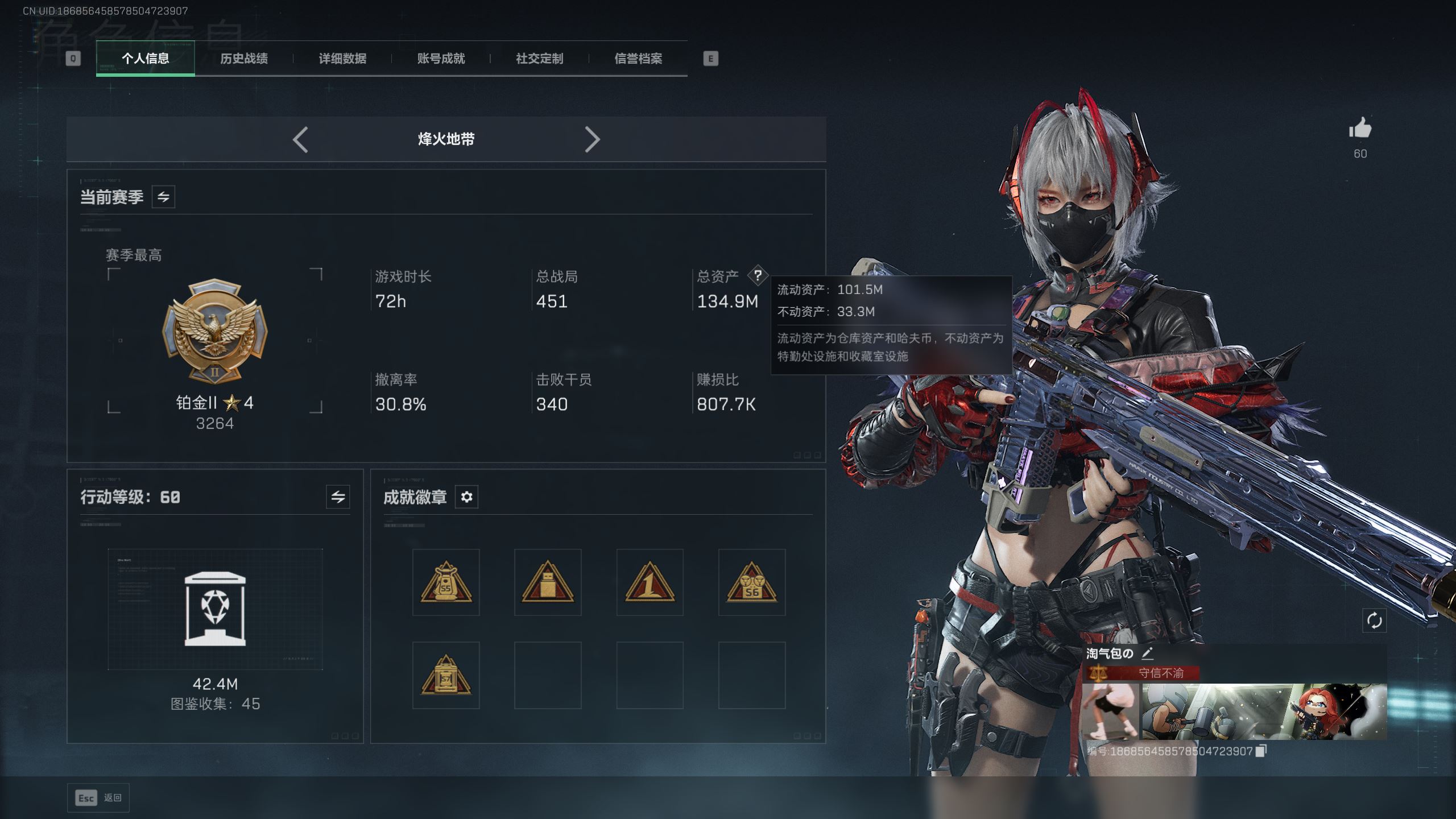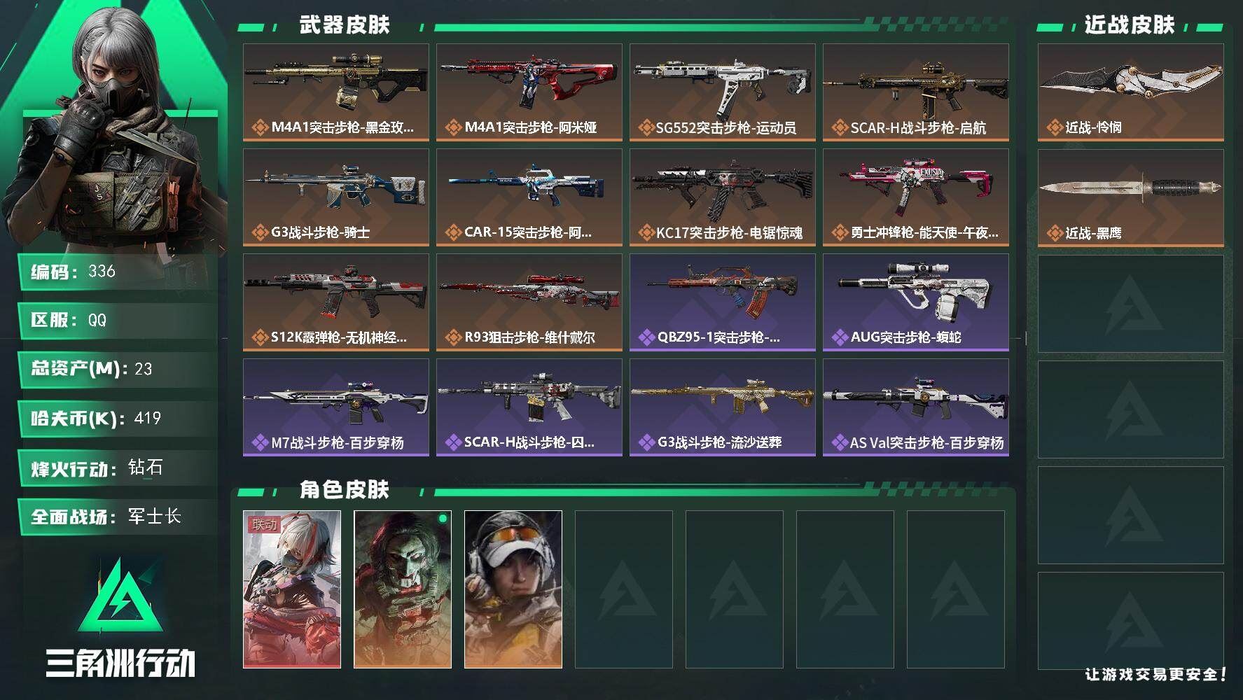 【游戏多多】 R50784 可二次QQ【S7赛季6格】23m总资产-419k哈伏币-60烽火等级-钻石-24战场等级-军士长【指挥中心5级+训练中心6级】【77发AWM子弹】【干员外观】:骇爪-维什戴尔,红狼-电锯惊魂,露娜-金牌射手【近战皮肤】:近战-怜悯,近战-黑鹰【传说外观】:M4A1突击步枪-蚀金玫瑰,M4A1突击步枪-阿米娅,SG552突击步枪-运动员,SCAR-H战斗步枪-启航,G3战斗步枪-骑士,CAR-15突击步枪-阿米娅,KC17突击步枪-电锯惊魂,勇士冲锋枪-能天使-午夜邮差,S12K霰弹枪-无机神经元,R93狙击步枪-维什戴尔,各种道具详情看截图、低价出售找回包 赔、截图展示段位不代 表实际段位,如赛季更新等不可抗拒因素发生变化、时限道具不保证所剩时间、标题未写送点劵默认不送【卖号买号首选亿梦】