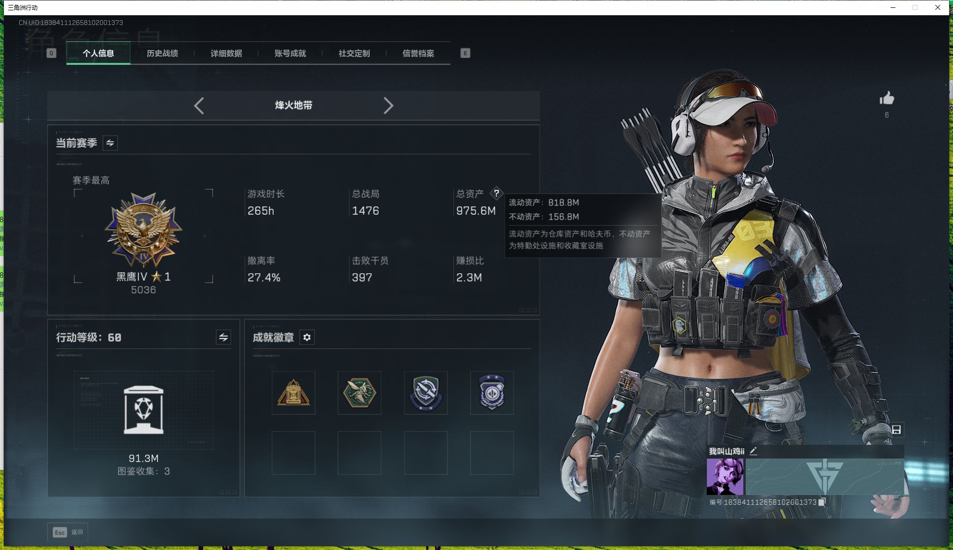 【游戏多多】 r50919 可二次qq【8天九格】【99m总资产-1119k哈伏币-60烽火等级-钻石-31战场等级-上等兵】【指挥中心6级/训练中心7级/靶场7级/仓库9级】【红狼-蚀金玫瑰,骇爪-水墨云图,露娜-黑·天际线,骇爪-维什戴尔,威龙-铁面判官,威龙-壮志凌云,蜂医-送葬人·无题密令,牧羊人-街头之王,无名-夜鹰,深蓝-不破誓约】【近战-北极星,近战-黑鹰】【M4A1突击步枪-蚀金玫瑰,M4A1突击步枪-阿米娅,QBZ95-1突击步枪-破军,ASh-12战斗步枪-鹅鸭杀,M7战斗步枪-神秘艺术,M7战斗步枪-维京,AK-12突击步枪-夜鹰,AK-12突击步枪-特斯拉线圈,SCAR-H战斗步枪-铁艺苍穹,SCAR-H战斗步枪-水墨云图,SCAR-H战斗步枪-启航,CAR-15突击步枪-阿米娅,AS Val突击步枪-死神玫瑰,腾龙突击步枪-捞点薯条,腾龙突击步枪-死神玫瑰,K437突击步枪-北极星,P90冲锋枪-神秘艺术,UZI冲锋枪-特斯拉线圈,SMG-45冲锋枪-骑士,SR-3M紧凑突击步枪-特斯拉线圈,勇士冲锋枪-能天使-午夜邮差,QCQ171冲锋枪-北极星,QCQ171冲锋枪-鹅鸭杀,S12K霰弹枪-死神玫瑰,725双管霰弹枪-送葬人-无题密令,M250通用机枪-骑士之心,QJB201轻机枪-鹅鸭杀,SR-25射手步枪-水墨云图,R93狙击步枪-维什戴尔,AWM狙击步枪-捞点薯条,93R-捞点薯条,复合弓-黑·天际线】各种道具详情看截图、低价出售找回包 赔、截图展示段位不代 表实际段位,如赛季更新等不可抗拒因素发生变化、时限道具不保证所剩时间、标题未写送点劵默认不送【卖号买号首选亿梦】