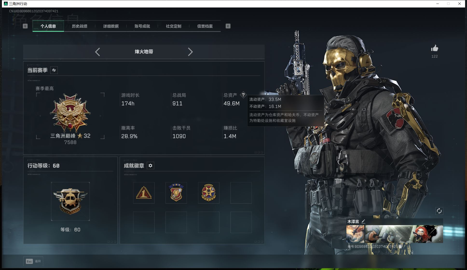 【游戏多多】 XAB0028流动资金305M/北极星/满体满负重/电锯惊魂/送葬人/金牌射手/1级收藏室价值8600w/非洲之心/烽火奖杯/32发aw子弹/182藏品皮肤