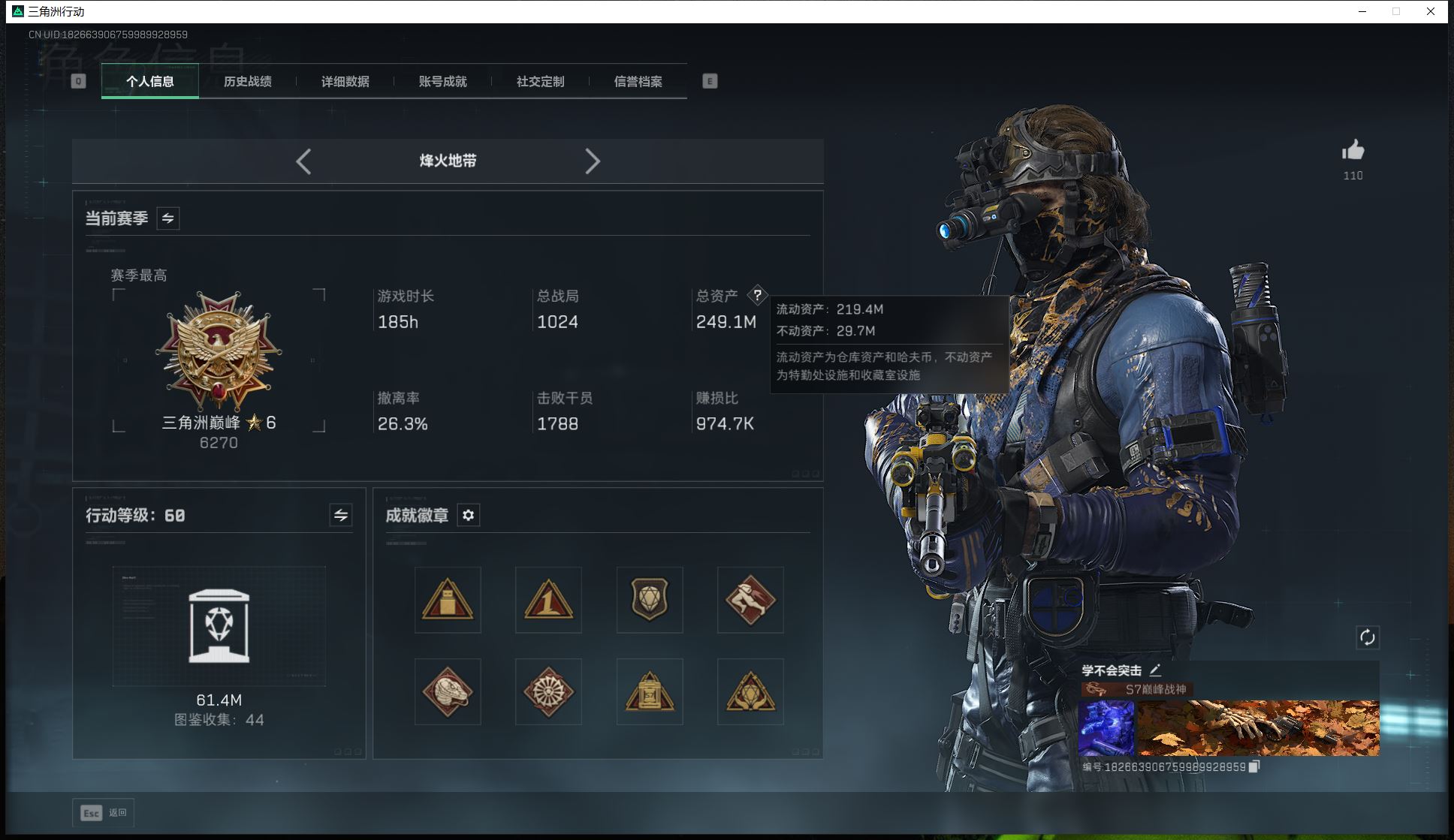【游戏多多】 ff4364 三角洲 Q 行动等级60级总资产95m【电锯信条】骇爪维什戴尔红狼电锯不破深蓝多枪皮捆绑包