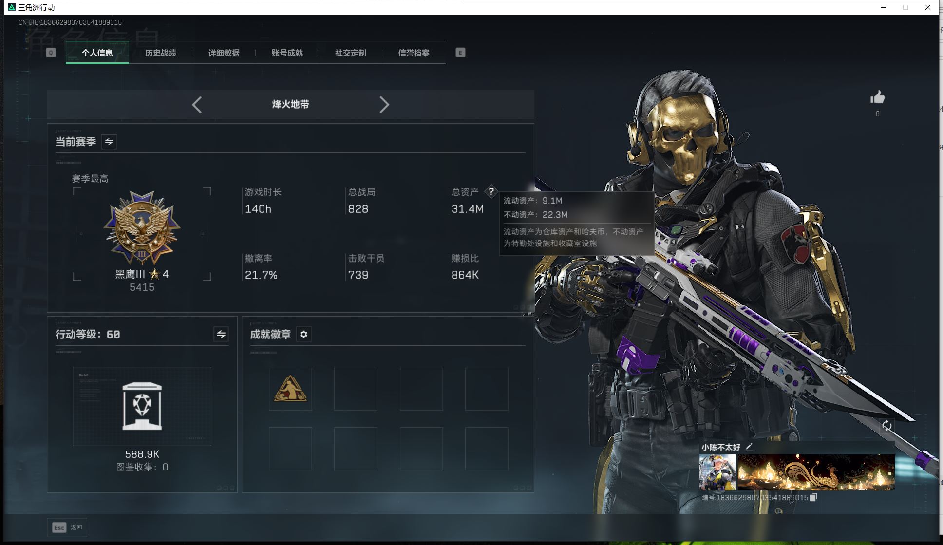 【游戏多多】 ff4364 三角洲Q 行动等级60级【北极星】露娜天际线北极星多枪皮