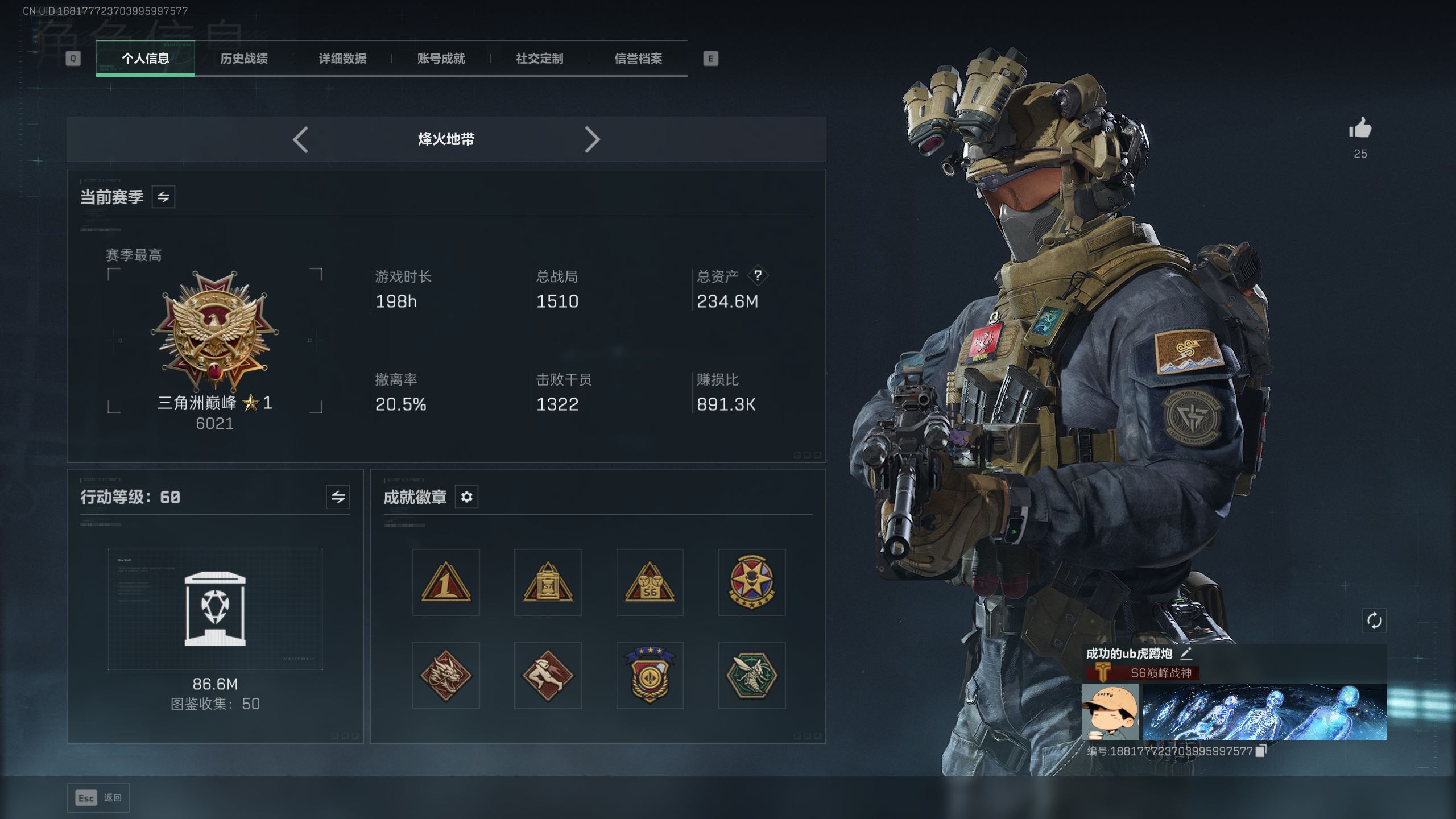 【游戏多多】 r50188 可二次qq【赛季9格】【行动等级60】【总资产368m】【-62226k哈伏币】【awm子弹86发】【仓库10/指挥中心6/训练中心7/靶场7/收藏室2级】【红狼-蚀金玫瑰,露娜-黑·天际线,骇爪-维什戴尔,蜂医-送葬人·无题密令,深蓝-不破誓约,红狼-电锯惊魂,露娜-金牌射手】【近战-北极星】【M4A1突击步枪-蚀金玫瑰,M4A1突击步枪-阿米娅,ASh-12战斗步枪-鹅鸭杀,SG552突击步枪-运动员,AK-12突击步枪-特斯拉线圈,SCAR-H战斗步枪-启航,G3战斗步枪-骑士,CAR-15突击步枪-阿米娅,腾龙突击步枪-捞点薯条,K437突击步枪-北极星,KC17突击步枪-电锯惊魂,UZI冲锋枪-特斯拉线圈,SR-3M紧凑突击步枪-特斯拉线圈,勇士冲锋枪-能天使-午夜邮差,QCQ171冲锋枪-北极星,QCQ171冲锋枪-鹅鸭杀,725双管霰弹枪-送葬人-无题密令,M250通用机枪-骑士之心,QJB201轻机枪-鹅鸭杀,R93狙击步枪-维什戴尔,AWM狙击步枪-捞点薯条,93R-捞点薯条,复合弓-黑·天际线】各种道具详情看截图、低价出售找回包 赔、截图展示段位不代 表实际段位,如赛季更新等不可抗拒因素发生变化、时限道具不保证所剩时间、标题未写送点劵默认不送【卖号买号首选亿梦】