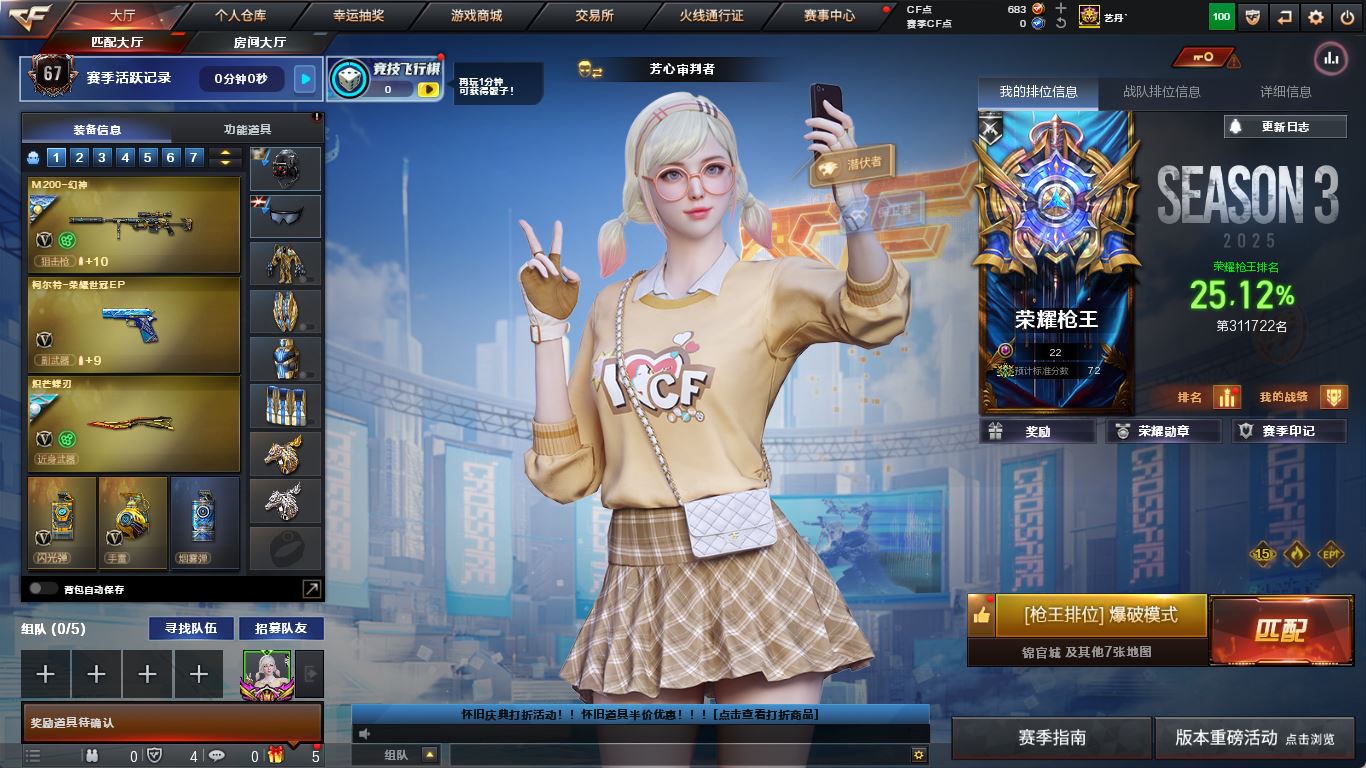 【游戏多多】 【可包人脸】ljh hh AK025557 吉林一区 vip5 21v【亮点解析 幻神三件套 哔哩哔哩名片】【M200-幻神+音效卡+幻神-冠军之幻】【ScarLight-白虎】【QBZ03-金色蔷薇】【毁灭+毁灭-荣耀之怒】【荣耀世冠套】【火麒麟】【雷神+雷神-荣耀之魄】【黑骑士+音效卡】【hk417-朱雀】【2手枪 修罗】【3近战 屠龙 斩神刀雷暴】【角色 战地猎狐 乔伊教练 修道士】-----【更多炫彩背包/光效/名片/武器具体看图!截图展示段位不代实际段位,赛季更新等不可抗拒因素发生变化、时限道具不保证所剩时间、标题未写送点券默认不送】【主播担保+安全至上+性价比 买号卖号只选金牌商家一左友】