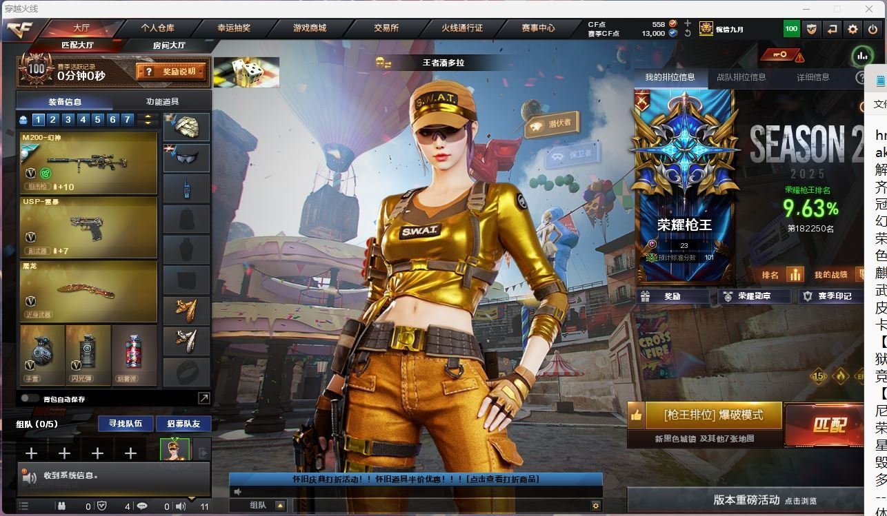 【游戏多多】 【可包人脸】hmc hh AK025926河南一区27v【m200幻神+宠儿+冠军之特】【王者星霆 】【传说梦魇】【qbz金色蔷薇】【火麒麟】【雷神+n9皮肤+荣耀之魄 】【毁灭】【4手枪:修罗*3 冠军之特 】【4刀具:屠龙 麒麟刺*2 龙啸 】【四防角色:王者魅影 】----更多炫彩背包/光效/名片/武器具体看图!截图展示段位不代实际段位,赛季更新等不可抗拒因素发生变化、时限道具不保证所剩时间、标题未写送点券默认不送】【主播担保+安全至上+性价比 买号卖号只选金牌商家一左友】