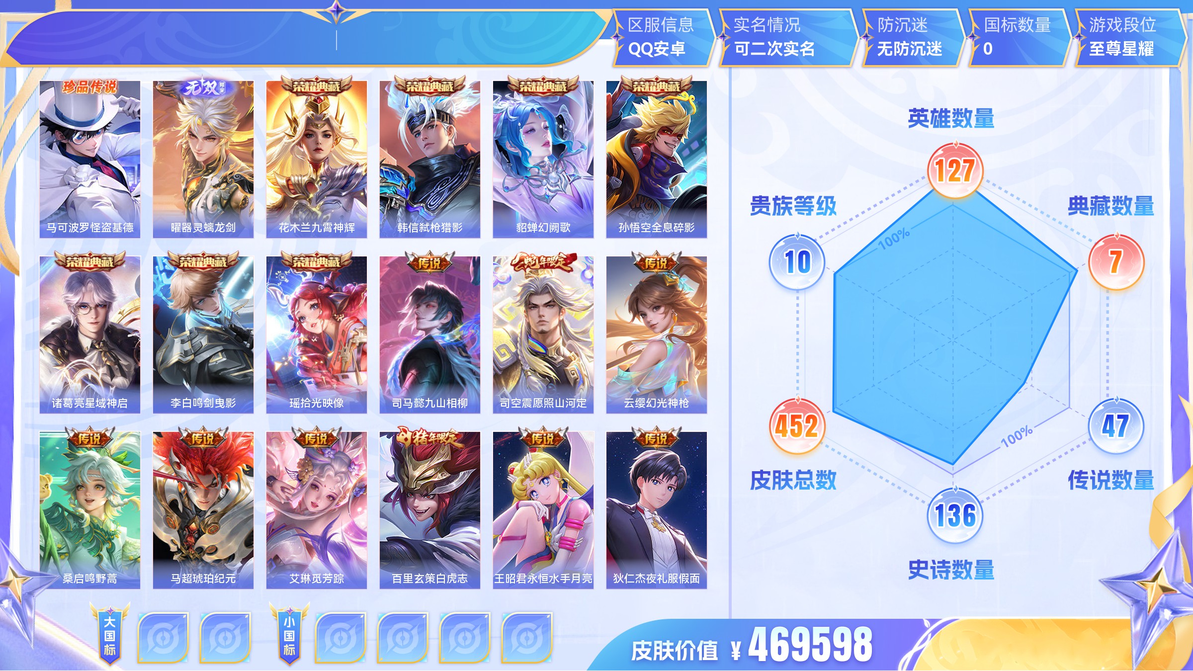【游戏多多】 【可二次实名】lcfak000111 【安卓qq】【营地id:2134824023】【v7】英雄120 皮肤322 典藏2 传说6 史诗91 限定106【典藏 瑶拾光映像 孙悟空全息碎影】【星传说 零号·雷霆孙悟空 零号·赤焰 未来机甲孙尚香 末日机甲】【传说 孙悟空 -零号·赤焰 李白 -凤求凰 孙尚香 -末日机甲 桑启 -鸣野蒿 诸葛亮 -时雨天司 百里守约 -碎云】【限定 戈娅 -驭风魔法 韩信 -飞衡 狄仁杰 -阴阳师 狄仁杰 -魔术师 嬴政 -白昼王子 元歌 -云间偶戏 典韦 -蓝屏警告 蒙恬 -蔚蓝守将 太乙真人 -华丽摇滚 雅典娜 -单词大作战 狂铁 -电玩高手 米莱狄 -胡桃异想国 马可波罗 -暗影游猎 花木兰 -瑞麟志 嫦娥 -拒霜思 花木兰 -水晶猎龙者 杨玉环 -遇见飞天 钟馗 -神迹守卫 后羿 -圣弓游侠 王昭君 -午后时光 鲁班大师 -乓乓大师 项羽 -海滩派对 上官婉儿 -梁祝 周瑜 -赤莲之焰 阿轲 -迷踪丽影 亚瑟 -潮玩骑士王 宫本武藏 -霸王丸 云中君 -纤云弄巧 鬼谷子 -五谷丰年 裴擒虎 -李小龙 太乙真人 -劲辣红锅 赵云 -皇家上将 蔡文姬 -繁星吟游 猪八戒 -猪悟能 孙悟空 -至尊宝 鲁班七号 -狮舞东方 兰陵王 -驯魔猎人 吕布 -猎兽之王 老夫子 -圣诞老人 女娲 -朔望之晖 扁鹊 -奇幻香踪 钟无艳 -王者之锤 杨戬 -潮玩骑兵 黄忠 -火炮绅士 猪八戒 -西部大镖客 百里守约 -朱雀志 雅典娜 -黎明之约 老夫子 -航海奇遇记 刘邦 -夺宝奇兵 庄周 -高山流水 马可波罗 -山海·玄木吟 孙尚香 -沉稳之力 达摩 -星际陆战队 高渐离 -死亡摇滚 孙悟空 -大圣娶亲 芈月 -幻夜卜梦 蒙犽 -狂想玩偶喵 西施 -玲珑珍味】【史诗 李元芳 -逐浪之夏 白起 -星夜王子 刘禅 -电玩·爆裂旋风 孙尚香 -蔷薇恋人 鲁班七号 -蔬乡物语 廉颇 -地狱岩魂 刘邦 -德古拉伯爵 孙尚香 -水果甜心 阿古朵 -江河有灵 妲己 -女仆咖啡 伽罗 -箭羽风息 刘禅 -绅士熊喵 墨子 -金属风暴 百里守约 -真我赫兹 鲁班七号 -电玩小子 嬴政 -暗夜贵公子 宫本武藏 -鬼剑武藏 大乔 -白蛇 赵云 -未来纪元 大乔 -猫狗日记 阿轲 -节奏热浪 韩信 -白龙吟 曹操 -幽灵船长 兰陵王 -暗隐猎兽者 瑶 -遇见神鹿 吕布 -末日机甲 程咬金 -功夫厨神 夏侯惇 -乘风破浪 蒙犽 -百解令 妲己 -灵卜魔法 王昭君 -偶像歌手 百里守约 -特工魅影 高渐离 -燃音魔法 周瑜 -雪夜绮愿 蒙恬 -荣光圣徽 孙策 -猫狗日记 亚连 -破空之剑 嬴政 -摇滚巨星 蔡文姬 -舞动绿茵 姬小满 -战舞者 吕布 -圣诞狂欢 貂蝉 -圣诞恋歌 甄姬 -冰雪圆舞曲 小乔 -青蛇 小乔 -缤纷独角兽 蔡文姬 -夏日便利店 高渐离 -玩趣恶龙 元歌 -无心 诸葛亮 -黄金分割率 安琪拉 -心灵骇客 李白 -千年之狐 露娜 -紫霞仙子 项羽 -苍穹之光 镜 -青焰无极】 ----【截图展示段位不代表实际段位,如赛季更 新等不可抗拒因素发生变化、时限道具不保证所剩时间、标题未写送点卷默认不送】买号找【左友】永久包赔