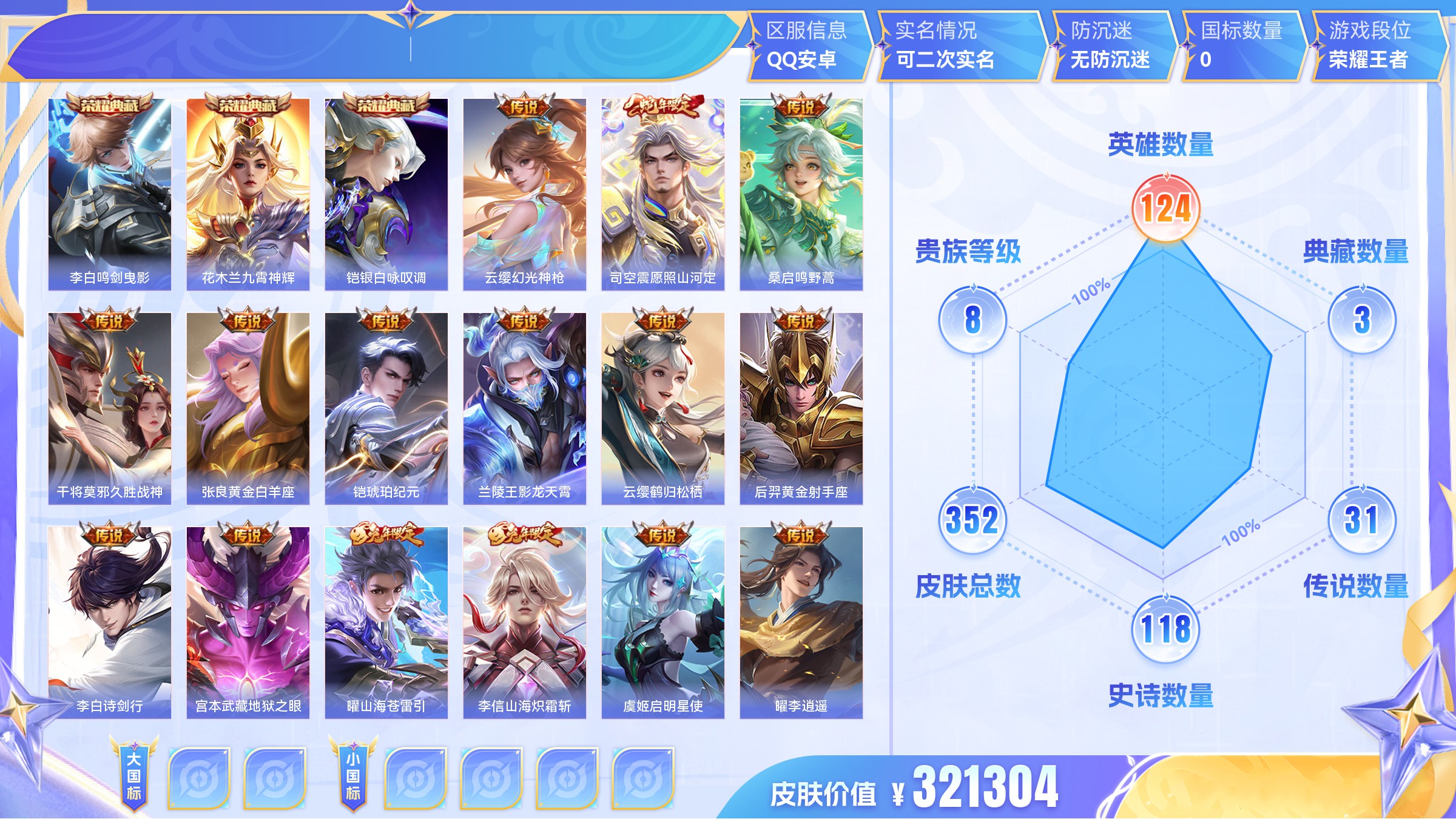 【游戏多多】 【可二次实名】【64374beda】 典藏3 传说31 史诗118 限定123 英雄124 皮肤352 稀有英雄9 贵族8级 总场次12054 皮肤价值:321304 【荣耀典藏3】 李白鸣剑曳影 花木兰九霄神辉 铠银白咏叹调【传说皮肤31】 云缨幻光神呛 司空震愿照山河定 桑启鸣野蒿 干将莫邪久胜战神 张良黄金白羊座 铠琥珀纪元 兰陵王影龙天霄 云缨鹤归松栖 后羿黄金射手座 李白诗剑行 宫本武藏地狱之眼 曜山海苍雷引 李信山海炽霜斩 虞姬启明星使 曜李逍遥 花木兰冠军飞将 马超无双飞将 大乔挚爱花嫁 孙策挚爱之约 西施游龙清影 达摩黄金狮子座 诸葛亮武陵仙君 女娲补天 孙策末日机甲 铠绛天战甲 赵云淬星耀世 孙尚香异界灵契 曜云鹰飞将 貂蝉仲夏夜之梦 李信一念神魔 镜炽阳神光【史诗皮肤118】 司马懿暗渊魔法 黄忠百相守梦 后羿石田雨龙 扁鹊灵蛊蚀心 狂铁龙之律动 阿轲化蝶舞 嬴政暗夜贵公子 赵怀真器灵浮梦炉 伽罗箭羽风息 牛魔星界战将 刘禅绅士熊喵 露娜紫霞仙子 杨玉环遇见飞天 大乔猫狗日记 刘邦德古拉伯爵 廉颇地狱岩魂 项羽苍穹之光 蒙犽顽岩魄 百里玄策原初追逐者 张飞乱世虎臣 姬小满妄想食味 鲁班七号蔬乡物语 小乔青蛇 芈月白晶晶 高渐离燃音魔法 貂蝉圣诞恋歌 云中君纤云弄巧 蒙恬荣光圣徽 周瑜雪夜绮愿 蒙犽百解令 嬴政摇滚巨星 刘禅天才门将 程咬金功夫厨神 西施至美乘鲤谣 阿古朵江河有灵 司空震地狱燃心 蔡文姬舞动绿茵 甄姬冰雪圆舞曲 墨子龙骑士 吕布圣诞狂欢 亚瑟心灵战警 赵云引擎之心 刘禅电玩爆裂旋风 雅典娜黎明之约 扁鹊奇幻香踪 关羽百相守梦 老夫子圣诞老人 暃星界游侠 马可波罗山海玄木吟 孙策猫狗日记 兰陵王暗隐猎兽者 韩信飞衡 李元芳逐浪之夏 梦奇顽趣 阿轲节奏热浪 元歌无心 孙尚香水果甜心 安琪拉心灵骇客 鬼谷子五谷丰年 澜赏金猎手 赵云未来纪元 百里守约特工魅影 百里守约朱雀志 狂铁电玩高手 不知火舞魅语 张良千筹问战 王昭君偶像歌手 明世隐吟游魔法 宫本武藏鬼剑武藏 夏侯惇匿光决锋者 曹操幽灵船长 夏洛特永昼 百里玄策热力回旋 赵云百木心呛 元歌云间偶戏 露娜一生所爱 云中君时之祈愿 黄忠火炮绅士 公孙离无限星赏官 白起星夜王子 廉颇寅虎御盾 花木兰水晶猎龙者 诸葛亮黄金分割率 妲己女仆咖啡 夏侯惇乘风破浪 镜匿光追影者 花木兰青春决赛季 娜可露露晚萤 吕布末日机甲 鲁班七号电玩小子 嫦娥拒霜思 狄仁杰魔术师 嬴政优雅恋人 铠青龙志 干将莫邪真爱魔法 庄周高山流水 韩信白龙吟 马超神威 上官婉儿梁祝 阿轲暗夜猫娘 墨子金属风暴 赵云皇家上将 猪八戒猪悟能 安琪拉时之奇旅 孙悟空孙行者 李白千年之狐 马可波罗暗影游猎 老夫子航海奇遇记 小乔缤纷独角兽 大乔白鹤梁神女 伽罗天狼溯光者 橘右京修罗 蒙犽龙鼓争鸣 米莱狄胡桃异想国 铠曙光守护者 狄仁杰鹰眼统帅 裴擒虎李小龙 妲己魅力维加斯【年限皮肤9】 司空震愿照山河定 孙悟空美猴王 马可波罗山海玄木吟 曜山海苍雷引 韩信飞衡 李信山海炽霜斩 百里守约朱雀志 廉颇寅虎御盾 铠青龙志【内测皮肤3】 姬小满妄想食味 高渐离玩趣恶龙 嬴政优雅恋人【限定皮肤123】 哪吒罗小黑战记 鬼谷子克喵 甄姬逆浪荇歌 白起死霸装 后羿石田雨龙 姬小满小满鸭 阿古朵布丁狗之约 苏烈春野闲踪 狂铁龙之律动 钟馗虚灵犬护 阿轲化蝶舞 司空震愿照山河定 赵怀真器灵浮梦炉 西施雪境奇遇 太乙真人谧流熔炉 牛魔星界战将 杨玉环遇见飞天 桑启鸣野蒿 东皇太一噬灭天穹 盘古敬我三分 蒙犽顽岩魄 姜子牙天穹之誓 周瑜熔金海岸 百里玄策原初追逐者 姬小满妄想食味 刘邦剑破天穹 鲁班七号蔬乡物语 沈梦溪龙舞盛年 李元芳蔬乡物语 芈月白晶晶 铠琥珀纪元 嫦娥漠中幻影 高渐离燃音魔法 鬼谷子天穹祈灯 妲己灵卜魔法 云中君纤云弄巧 蒙恬荣光圣徽 周瑜雪夜绮愿 蒙犽百解令 西施至美乘鲤谣 阿古朵江河有灵 司空震地狱燃心 兰陵王影龙天霄 张良古海寻踪 艾琳流音漫舞 云缨鹤归松栖 赵云引擎之心 孙悟空美猴王 鲁班大师探海日志 雅典娜黎明之约 扁鹊奇幻香踪 关羽百相守梦 裴擒虎擒涛扼浪 杨戬潮玩骑兵 老夫子圣诞老人 太乙真人华丽摇滚 暃星界游侠 嫦娥暖冬兔眠 马可波罗山海玄木吟 曜山海苍雷引 韩信飞衡 李信山海炽霜斩 高渐离玩趣恶龙 桑启海盐诗旅 梦奇顽趣 元歌无心 鬼谷子五谷丰年 李元芳云中旅人 沈梦溪星空之诺 百里守约朱雀志 狂铁电玩高手 王昭君午后时光 沈梦溪大漠名商 虞姬启明星使 曜李逍遥 大乔挚爱花嫁 孙策挚爱之约 明世隐吟游魔法 白起夜都怪侠 夏侯惇匿光决锋者 诸葛亮武陵仙君 兰陵王金庭之子 女娲补天 赵云百木心呛 元歌云间偶戏 露娜一生所爱 云中君时之祈愿 高渐离死亡摇滚 黄忠火炮绅士 廉颇寅虎御盾 达摩沙漠行僧 芈月幻夜卜梦 镜匿光追影者 花木兰青春决赛季 嫦娥拒霜思 孙尚香异界灵契 狄仁杰魔术师 嬴政优雅恋人 铠青龙志 干将莫邪真爱魔法 庄周高山流水 马超神威 上官婉儿梁祝 赵云皇家上将 后羿圣弓游侠 猪八戒猪悟能 孙悟空孙行者 苏烈千军破阵 项羽海滩派对 马可波罗暗影游猎 老夫子航海奇遇记 大乔白鹤梁神女 伽罗天狼溯光者 钟馗驱傩正仪 墨子神迹守卫 米莱狄胡桃异想国 达摩星际陆战队 程咬金演武夺筹 狄仁杰阴阳师 狄仁杰万华元夜 