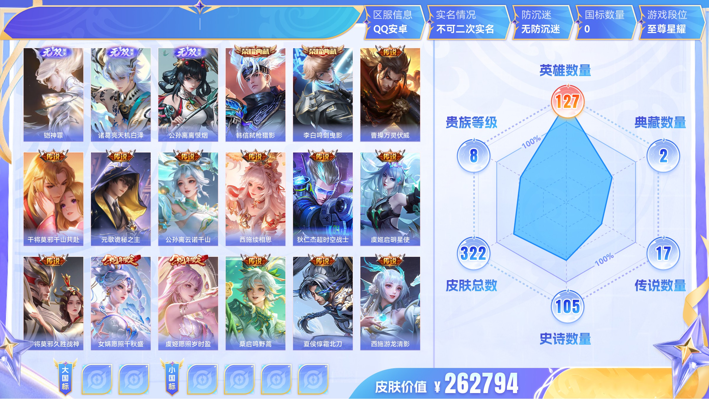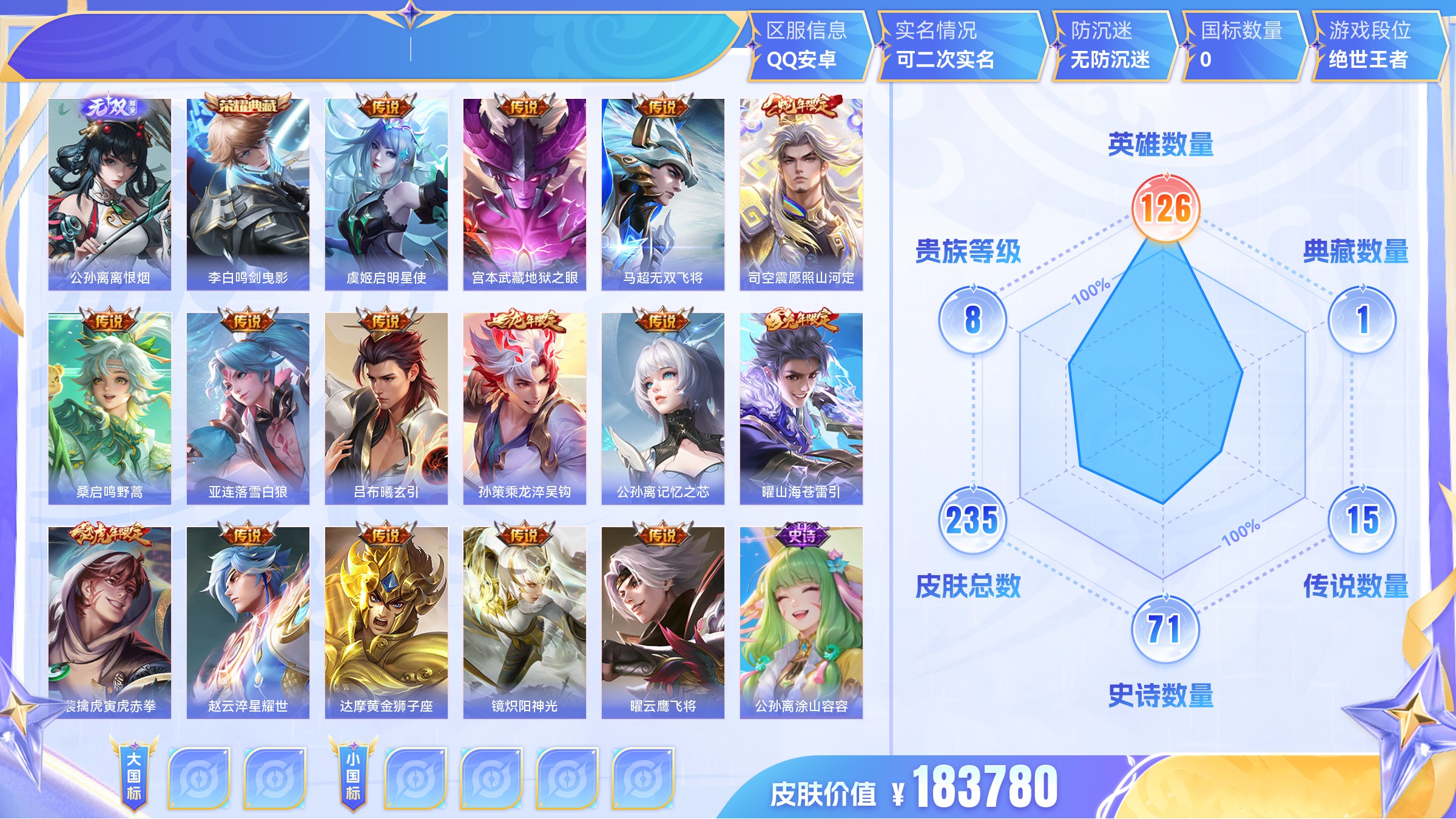 【游戏多多】 【可二次实名】【6ztq6ghcc】 无双7 典藏6 传说83 史诗189 限定217 英雄125 皮肤509 稀有英雄11 贵族10级 总场次9006 皮肤价值:542712 【无双皮肤7】 公孙离离恨烟 不知火舞花合斗 韩信群星魔术团 小乔时之魔女 李白碎月剑心 瑶真我赫兹 妲己青丘九尾【荣耀典藏6】 花木兰九霄神辉 孙尚香杀手不太冷 虞姬神鉴启示录 武则天倪克斯神谕 貂蝉幻阙歌 小乔天鹅之梦【传说皮肤83】 夏侯惇霜北刀 后羿黄金射手座 孙尚香音你闪耀 李白凤求凰 孙策挚爱之约 朵莉亚心动手记 云中君群星魔术团 吕布天魔缭乱 墨子黄金天蝎座 狄仁杰神器狴犴令 王昭君乞巧织情 刘备时之恋人 海月金乌负日 张良黄金白羊座 亚连落雪白狼 吕布曦玄引 貂蝉曦玄引 赵云淬星耀世 澜电玩雷克斯 宫本武藏惊梅引 诸葛亮武陵仙君 虞姬云霓雀翎 赵云乘龙铭钟鼎 孙策乘龙淬吴钩 孙尚香乘龙问璇玑 典韦战鼓燎原 周瑜音你心动 马超琥珀纪元 铠琥珀纪元 艾琳觅芳踪 澜逐花归海 露娜霜月吟 孙膑小动物乐团 百里玄策白虎志 狄仁杰夜礼服假面 王昭君永恒水手月亮 马可波罗深海之息 曜云鹰飞将 王昭君星穹之声 甄姬至美化雀舞 鲁班七号时之奇旅 大乔时之奇旅 兰陵王影龙天霄 关羽武圣 吕布遇见神鼓 云缨鹤归松栖 上官婉儿妄想奇谈 东皇太一灼幽烈阳 马可波罗妄想实况 诸葛亮鹤羽星尊 兰陵王默契交锋 安琪拉追逃游戏 亚瑟追逃游戏 李白诗剑行 公孙离记忆之芯 夏洛特浮生妄 小乔山海琳琅生 曜山海苍雷引 李信山海炽霜斩 不知火舞绯月行 橘右京枫霜尽 小乔音你心动 娜可露露前尘镜 镜炽阳神光 曜李逍遥 马超无双飞将 大乔挚爱花嫁 蔡文姬花朝如约 女娲补天 瑶时之祈愿 鲁班七号寅虎瑞焰 裴擒虎寅虎赤拳 孙尚香异界灵契 貂蝉遇见胡旋 伽罗太华 虞姬启明星使 武则天海洋之心 西施游龙清影 李元芳飞鸢探春 貂蝉猫影幻舞 公孙离祈雪灵祝 诸葛亮时雨天司 貂蝉仲夏夜之梦【史诗皮肤189】 妲己女仆咖啡 甄姬游园惊梦 大司命东方月初 少司缘涂山红红 姬小满战舞者 蒙犽顽岩魄 暃埋骨钱 蔡文姬夏日便利店 安琪拉魔法小厨娘 芈月浮光幕影 苏烈玄武志 花木兰瑞麟志 百里守约朱雀志 澜赏金猎手 黄忠怒海争锋 海诺心动手记 明世隐夜落电台 镜青焰无极 干将莫邪冰霜恋舞曲 上官婉儿群星魔术团 夏侯惇匿光决锋者 桑启奇遇星旅 孙悟空大圣娶亲 亚瑟心灵战警 沈梦溪月团寄思 鲁班七号电玩小子 廉颇寅虎御盾 典韦蓝屏警告 李白千年之狐 铠青龙志 鲁班七号蔬乡物语 阿古朵顽趣 庄周玄嵩 百里玄策超元猎域 嬴政暗夜贵公子 黄忠烈魂 曹操夜都魔契 大乔乘龙忆丹青 安琪拉乘龙聚宝船 项羽苍穹之光 白起星夜王子 伽罗箭羽风息 甄姬幽恒 西施诗语江南 姬小满妄想食味 伽罗琥珀纪元 暃星界游侠 哪吒逐梦之翼 公孙离无限星赏官 高渐离燃音魔法 张飞乱世虎臣 蒙恬荣光圣徽 牛魔奔雷神使 公孙离玉兔公主 周瑜雪夜绮愿 典韦岱宗 蒙犽百解令 铠曙光守护者 姜子牙闲日渔趣 雅典娜黎明之约 刘禅绅士熊喵 阿古朵江河有灵 西施至美乘鲤谣 艾琳奇遇舞章 程咬金功夫厨神 司空震地狱燃心 廉颇地狱岩魂 鲁班七号乒乒小将 貂蝉逐梦之音 李元芳匿光侦查者 莱西奥末日机甲 百里守约特工魅影 公孙离蜜橘之夏 赵怀真鹤归松栖 大乔白蛇 百里守约真我赫兹 镜真我赫兹 戈娅驭风魔法 吕布御风骁将 海月浮梦罗烟 杨戬天秀启明 赵云引擎之心 米莱狄完美假期 百里玄策原初追逐者 刘禅电玩爆裂旋风 猪八戒猪悟能 金蝉唐三藏 蔡文姬电玩兔顽号 扁鹊奇幻香踪 花木兰默契交锋 沈梦溪匿光破解者 王昭君凤凰于飞 刘备百相守梦 镜玫瑰异探 刘禅天才门将 曹操幽灵船长 马可波罗山海玄木吟 吕布末日机甲 瑶山海碧波行 梦奇顽趣 阿轲节奏热浪 元歌无心 上官婉儿神器万象笔 赵云未来纪元 鬼谷子五谷丰年 钟无艳超时空战士 妲己时之奇旅 弈星滕王阁序 雅典娜冰冠公主 裴擒虎天狼狩猎者 鲁班大师匿光启智者 蔡文姬奇迹圣诞 孙策猫狗日记 妲己热情桑巴 狂铁电玩高手 上官婉儿天狼绘梦者 王昭君偶像歌手 虞姬霸王别姬 明世隐吟游魔法 宫本武藏鬼剑武藏 貂蝉唤灵魅影 夏侯惇乘风破浪 花木兰水晶猎龙者 夏洛特永昼 鲁班七号狮舞东方 吕布圣诞狂欢 露娜一生所爱 阿轲暗夜猫娘 周瑜真爱至上 小乔纯白花嫁 云中君时之祈愿 黄忠火炮绅士 韩信傲雪梅呛 露娜紫霞仙子 后羿如梦令 嫦娥如梦令 孙膑寅虎展翼 杨玉环寅虎心曲 花木兰青春决赛季 甄姬女儿国国王 镜匿光追影者 嬴政摇滚巨星 嫦娥拒霜思 兰陵王暗隐猎兽者 庄周高山流水 妲己时之彼端 干将莫邪真爱魔法 司马懿暗渊魔法 马超神威 诸葛亮黄金分割率 杨玉环遇见飞天 墨子金属风暴 孙悟空孙行者 安琪拉时之奇旅 甄姬冰雪圆舞曲 老夫子航海奇遇记 嬴政优雅恋人 大乔白鹤梁神女 伽罗天狼溯光者 米莱狄胡桃异想国 百里玄策热力回旋 大乔猫狗日记 李元芳逐浪之夏 墨子龙骑士 娜可露露晚萤 小乔缤纷独角兽 东皇太一逐梦之光 貂蝉圣诞恋歌 安琪拉心灵骇客 元歌云间偶戏 孙尚香水果甜心 芈月白晶晶 蔡文姬舞动绿茵 孙膑天狼运算者 云中君纤云弄巧 不知火舞魅语 刘邦德古拉伯爵 孙尚香时之恋人 蒙犽狂想玩偶喵 裴擒虎李小龙 庄周云端筑梦师 狄仁杰魔术师 小乔青蛇 瑶遇见神鹿 赵云皇家上将 马可波罗暗