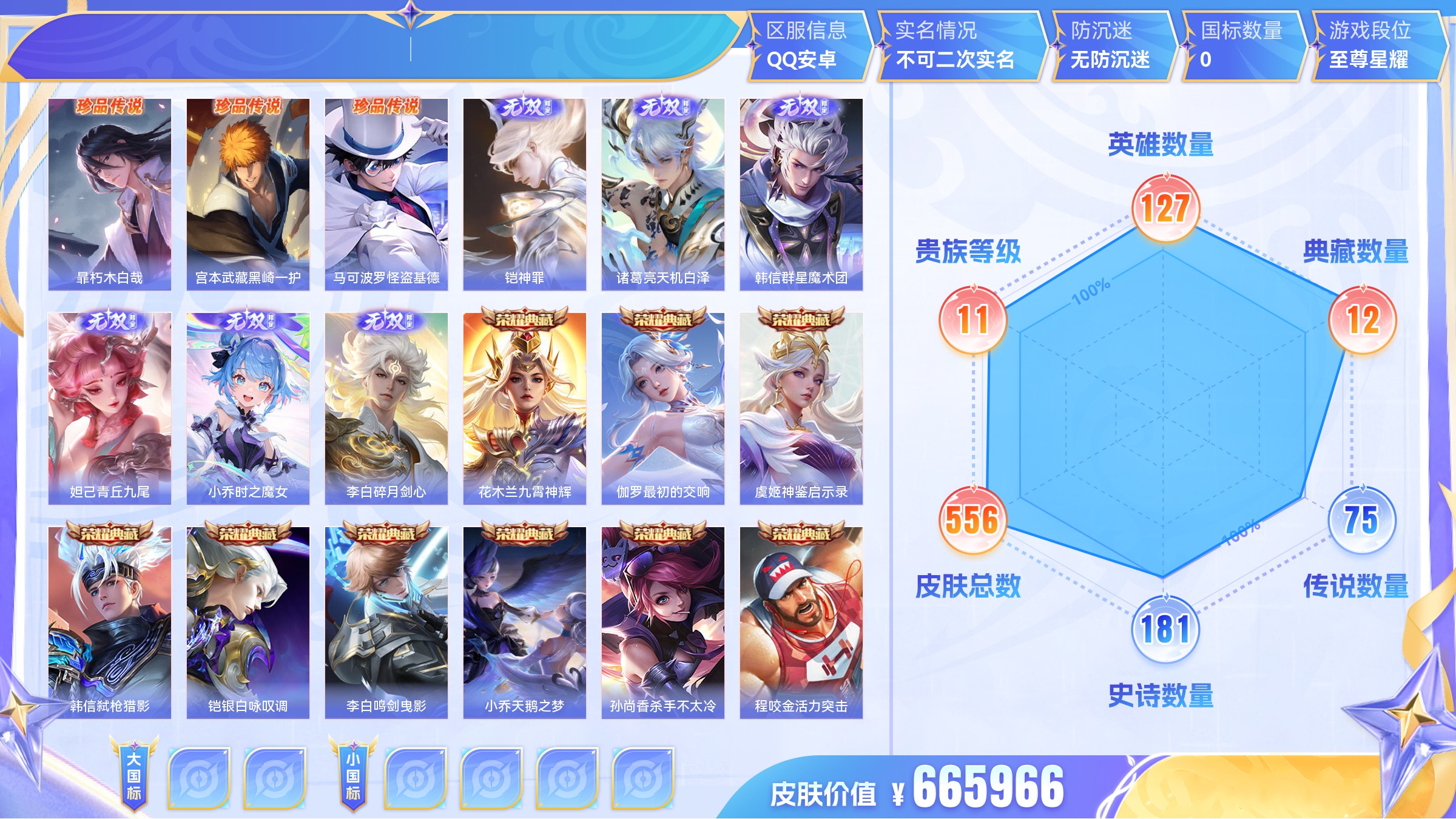 【游戏多多】 【可二次实名】【69x8jeeeb】 无双3 传说24 史诗62 限定81 英雄126 皮肤265 稀有英雄10 贵族8级 总场次5517 皮肤价值:172192 【无双皮肤3】 韩信群星魔术团 诸葛亮天机白泽 妲己青丘九尾【传说皮肤24】 干将莫邪千山共赴 杨戬永曜之星 张良黄金白羊座 王昭君乞巧织情 公孙离云诺千山 百里守约碎云 虞姬愿照岁时盈 虞姬启明星使 蔡文姬愿照福禄聚 镜炽阳神光 司空震愿照山河定 女娲愿照千秋盛 马超无双飞将 澜愿照九州拓 孙尚香乘龙问璇玑 百里玄策白虎志 赵云淬星耀世 伽罗太华 貂蝉仲夏夜之梦 铠绛天战甲 梦奇胖达荣荣 李白诗剑行 曜云鹰飞将 李信一念神魔【史诗皮肤62】 小乔缤纷独角兽 公孙离涂山容容 芈月白晶晶 西施织梦人 大司命东方月初 安琪拉心灵骇客 黄忠百相守梦 大乔白鹤梁神女 后羿辉光之辰 周瑜百相守梦 吕布圣诞狂欢 娜可露露晚萤 墨子金属风暴 小乔青蛇 狂铁龙之律动 刘禅鸭鸭历险记 白起星夜王子 孙膑茶境仙 阿轲化蝶舞 狄仁杰绮世丹青 亚瑟心灵战警 蔡文姬舞动绿茵 橘右京修罗 赵怀真器灵浮梦炉 蒙恬荣光圣徽 张飞乱世虎臣 花木兰水晶猎龙者 廉颇地狱岩魂 赵云未来纪元 程咬金功夫厨神 夏洛特永昼 姬小满妄想食味 百里守约特工魅影 蒙犽百解令 司空震地狱燃心 夏侯惇乘风破浪 花木兰瑞麟志 甄姬冰雪圆舞曲 兰陵王暗隐猎兽者 刘邦德古拉伯爵 阿古朵江河有灵 李元芳逐浪之夏 嬴政摇滚巨星 宫本武藏鬼剑武藏 百里守约真我赫兹 阿轲暗夜猫娘 孙悟空至尊宝 不知火舞魅语 苏烈玄武志 狄仁杰魔术师 镜玫瑰异探 马可波罗山海玄木吟 孙尚香水果甜心 云中君纤云弄巧 赵云皇家上将 裴擒虎李小龙 诸葛亮黄金分割率 黄忠烈魂 貂蝉圣诞恋歌 李白千年之狐 狄仁杰鹰眼统帅 上官婉儿梁祝【年限皮肤13】 后羿辉光之辰 杨戬永曜之星 虞姬愿照岁时盈 蔡文姬愿照福禄聚 司空震愿照山河定 女娲愿照千秋盛 澜愿照九州拓 孙尚香乘龙问璇玑 花木兰瑞麟志 百里玄策白虎志 伽罗太华 苏烈玄武志 马可波罗山海玄木吟【内测皮肤1】 姬小满妄想食味【限定皮肤81】 亚瑟荣光之誓 张良罗小黑战记 哪吒罗小黑战记 公孙离涂山容容 芈月白晶晶 西施织梦人 大司命东方月初 干将莫邪千山共赴 鬼谷子克喵 大乔白鹤梁神女 后羿辉光之辰 杨戬永曜之星 诸葛亮天机白泽 周瑜百相守梦 孙策百相守梦 甄姬逆浪荇歌 白起死霸装 姬小满小满鸭 阿古朵布丁狗之约 苏烈春野闲踪 狂铁龙之律动 沈梦溪鸭鸭历险记 刘禅鸭鸭历险记 钟馗虚灵犬护 马超访茗客 孙膑茶境仙 阿轲化蝶舞 虞姬愿照岁时盈 虞姬启明星使 蔡文姬愿照福禄聚 司空震愿照山河定 女娲愿照千秋盛 赵怀真器灵浮梦炉 澜愿照九州拓 蒙恬荣光圣徽 西施雪境奇遇 太乙真人谧流熔炉 东皇太一噬灭天穹 吕布逐霄战戟 周瑜熔金海岸 刘邦剑破天穹 沈梦溪龙舞盛年 孙尚香乘龙问璇玑 姬小满妄想食味 鬼谷子天穹祈灯 蒙犽百解令 司空震地狱燃心 艾琳流音漫舞 花木兰瑞麟志 百里玄策白虎志 阿古朵江河有灵 张良古海寻踪 伽罗太华 鲁班大师探海日志 妲己青丘九尾 孙悟空至尊宝 苏烈玄武志 裴擒虎擒涛扼浪 狄仁杰魔术师 马可波罗山海玄木吟 桑启海盐诗旅 狄仁杰万华元夜 云中君纤云弄巧 赵云皇家上将 裴擒虎李小龙 鬼谷子原初探秘者 老夫子醍醐杖 项羽海滩派对 黄忠烈魂 明世隐疑决卦 弈星混沌棋 夏侯惇朔风刀 上官婉儿梁祝 盾山御銮 牛魔御旌 米莱狄御霄 狂铁御狮 典韦穷奇 白起狰 虞姬凯尔特女王 狄仁杰阴阳师【其他136】 赵云白执事 元歌午夜歌剧院 安琪拉玩偶对对碰 莱西奥踏浪烽翎 云中君云械蓝图 司马懿魇语军师 诸葛亮掌控之力 上官婉儿修竹墨客 王昭君乞巧织情 鲁班大师归虚梦演 桑启画中游 刘邦圣殿之光 猪八戒年年有余 苍维京掠夺者 高渐离落日弦歌 明世隐虹云星官 庄周锦麟游梦 宫本武藏未来纪元 鲁班七号木偶奇遇记 刘禅英喵野望 露娜命运加冕 金蝉前尘 马可波罗激情绿茵 鬼谷子幻乐之宴 张良灵野札记 狂铁命运角斗场 高渐离金属狂潮 小乔秘证寻踪 刘备浪漫序章 戈娅玫蓝誓约 李白敏锐之力 明世隐景韶洛都 姜子牙星梦巡礼 白起白色死神 虞姬加勒比小姐 东皇太一东海龙王 杨戬埃及法老 钟馗地府判官 貂蝉异域舞娘 芈月红桃皇后 弈星踏雪寻梅 姜子牙时尚教父 阿古朵熊喵少女 百里守约绝影神呛 达摩爆裂喵拳 少司缘灵卦秘语 刘备汉昭烈帝 哪吒次元突破 典韦铁骨偃魂 苍苍林狼骑 海月幻泉雾影 干将莫邪雾都夜雨 后羿完美运算 李信灼热之刃 刘禅秘密基地 云缨赤焰之缨 程咬金群星魔术团 钟无艳春野之旅 廉颇功夫炙烤 后羿阿尔法小队 狂铁特工战影 司空震启蛰 朵莉亚金色潮汐 沈梦溪鲨炮海盗猫 王昭君幻想奇妙夜 曹操决胜大满贯 猪八戒潮玩探月行 扁鹊化身博士 韩信街头霸王 吕布野性能量 程咬金无双福将 李白范海辛 张飞五福同心 鬼谷子阿摩司公爵 蔡文姬蔷薇王座 后羿精灵王 钟无艳生化警戒 鲁班七号福禄兄弟 伽罗花见巫女 李元芳妄想特派 孙策海之征途 老夫子潮流仙人 雅典娜战争女神 莱西奥西部游侠 盾山极冰防御线 女娲尼罗河女神 太乙真人劲辣红锅 关羽天启骑士 曹操超能战警 孙尚香沉稳之力 苏烈爱与和平 孙膑未来旅行 瑶森 暃碧珀绯影 典韦黄金武士 孙膑天使之翼 关羽龙腾万里 王昭君精