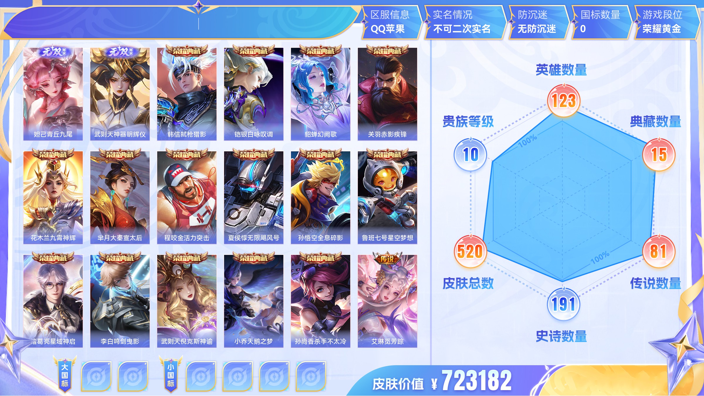 【游戏多多】 【可二次实名】【6ztq6ghcc】 无双7 典藏6 传说83 史诗189 限定217 英雄125 皮肤509 稀有英雄11 贵族10级 总场次9006 皮肤价值:542712 【无双皮肤7】 公孙离离恨烟 不知火舞花合斗 韩信群星魔术团 小乔时之魔女 李白碎月剑心 瑶真我赫兹 妲己青丘九尾【荣耀典藏6】 花木兰九霄神辉 孙尚香杀手不太冷 虞姬神鉴启示录 武则天倪克斯神谕 貂蝉幻阙歌 小乔天鹅之梦【传说皮肤83】 夏侯惇霜北刀 后羿黄金射手座 孙尚香音你闪耀 李白凤求凰 孙策挚爱之约 朵莉亚心动手记 云中君群星魔术团 吕布天魔缭乱 墨子黄金天蝎座 狄仁杰神器狴犴令 王昭君乞巧织情 刘备时之恋人 海月金乌负日 张良黄金白羊座 亚连落雪白狼 吕布曦玄引 貂蝉曦玄引 赵云淬星耀世 澜电玩雷克斯 宫本武藏惊梅引 诸葛亮武陵仙君 虞姬云霓雀翎 赵云乘龙铭钟鼎 孙策乘龙淬吴钩 孙尚香乘龙问璇玑 典韦战鼓燎原 周瑜音你心动 马超琥珀纪元 铠琥珀纪元 艾琳觅芳踪 澜逐花归海 露娜霜月吟 孙膑小动物乐团 百里玄策白虎志 狄仁杰夜礼服假面 王昭君永恒水手月亮 马可波罗深海之息 曜云鹰飞将 王昭君星穹之声 甄姬至美化雀舞 鲁班七号时之奇旅 大乔时之奇旅 兰陵王影龙天霄 关羽武圣 吕布遇见神鼓 云缨鹤归松栖 上官婉儿妄想奇谈 东皇太一灼幽烈阳 马可波罗妄想实况 诸葛亮鹤羽星尊 兰陵王默契交锋 安琪拉追逃游戏 亚瑟追逃游戏 李白诗剑行 公孙离记忆之芯 夏洛特浮生妄 小乔山海琳琅生 曜山海苍雷引 李信山海炽霜斩 不知火舞绯月行 橘右京枫霜尽 小乔音你心动 娜可露露前尘镜 镜炽阳神光 曜李逍遥 马超无双飞将 大乔挚爱花嫁 蔡文姬花朝如约 女娲补天 瑶时之祈愿 鲁班七号寅虎瑞焰 裴擒虎寅虎赤拳 孙尚香异界灵契 貂蝉遇见胡旋 伽罗太华 虞姬启明星使 武则天海洋之心 西施游龙清影 李元芳飞鸢探春 貂蝉猫影幻舞 公孙离祈雪灵祝 诸葛亮时雨天司 貂蝉仲夏夜之梦【史诗皮肤189】 妲己女仆咖啡 甄姬游园惊梦 大司命东方月初 少司缘涂山红红 姬小满战舞者 蒙犽顽岩魄 暃埋骨钱 蔡文姬夏日便利店 安琪拉魔法小厨娘 芈月浮光幕影 苏烈玄武志 花木兰瑞麟志 百里守约朱雀志 澜赏金猎手 黄忠怒海争锋 海诺心动手记 明世隐夜落电台 镜青焰无极 干将莫邪冰霜恋舞曲 上官婉儿群星魔术团 夏侯惇匿光决锋者 桑启奇遇星旅 孙悟空大圣娶亲 亚瑟心灵战警 沈梦溪月团寄思 鲁班七号电玩小子 廉颇寅虎御盾 典韦蓝屏警告 李白千年之狐 铠青龙志 鲁班七号蔬乡物语 阿古朵顽趣 庄周玄嵩 百里玄策超元猎域 嬴政暗夜贵公子 黄忠烈魂 曹操夜都魔契 大乔乘龙忆丹青 安琪拉乘龙聚宝船 项羽苍穹之光 白起星夜王子 伽罗箭羽风息 甄姬幽恒 西施诗语江南 姬小满妄想食味 伽罗琥珀纪元 暃星界游侠 哪吒逐梦之翼 公孙离无限星赏官 高渐离燃音魔法 张飞乱世虎臣 蒙恬荣光圣徽 牛魔奔雷神使 公孙离玉兔公主 周瑜雪夜绮愿 典韦岱宗 蒙犽百解令 铠曙光守护者 姜子牙闲日渔趣 雅典娜黎明之约 刘禅绅士熊喵 阿古朵江河有灵 西施至美乘鲤谣 艾琳奇遇舞章 程咬金功夫厨神 司空震地狱燃心 廉颇地狱岩魂 鲁班七号乒乒小将 貂蝉逐梦之音 李元芳匿光侦查者 莱西奥末日机甲 百里守约特工魅影 公孙离蜜橘之夏 赵怀真鹤归松栖 大乔白蛇 百里守约真我赫兹 镜真我赫兹 戈娅驭风魔法 吕布御风骁将 海月浮梦罗烟 杨戬天秀启明 赵云引擎之心 米莱狄完美假期 百里玄策原初追逐者 刘禅电玩爆裂旋风 猪八戒猪悟能 金蝉唐三藏 蔡文姬电玩兔顽号 扁鹊奇幻香踪 花木兰默契交锋 沈梦溪匿光破解者 王昭君凤凰于飞 刘备百相守梦 镜玫瑰异探 刘禅天才门将 曹操幽灵船长 马可波罗山海玄木吟 吕布末日机甲 瑶山海碧波行 梦奇顽趣 阿轲节奏热浪 元歌无心 上官婉儿神器万象笔 赵云未来纪元 鬼谷子五谷丰年 钟无艳超时空战士 妲己时之奇旅 弈星滕王阁序 雅典娜冰冠公主 裴擒虎天狼狩猎者 鲁班大师匿光启智者 蔡文姬奇迹圣诞 孙策猫狗日记 妲己热情桑巴 狂铁电玩高手 上官婉儿天狼绘梦者 王昭君偶像歌手 虞姬霸王别姬 明世隐吟游魔法 宫本武藏鬼剑武藏 貂蝉唤灵魅影 夏侯惇乘风破浪 花木兰水晶猎龙者 夏洛特永昼 鲁班七号狮舞东方 吕布圣诞狂欢 露娜一生所爱 阿轲暗夜猫娘 周瑜真爱至上 小乔纯白花嫁 云中君时之祈愿 黄忠火炮绅士 韩信傲雪梅呛 露娜紫霞仙子 后羿如梦令 嫦娥如梦令 孙膑寅虎展翼 杨玉环寅虎心曲 花木兰青春决赛季 甄姬女儿国国王 镜匿光追影者 嬴政摇滚巨星 嫦娥拒霜思 兰陵王暗隐猎兽者 庄周高山流水 妲己时之彼端 干将莫邪真爱魔法 司马懿暗渊魔法 马超神威 诸葛亮黄金分割率 杨玉环遇见飞天 墨子金属风暴 孙悟空孙行者 安琪拉时之奇旅 甄姬冰雪圆舞曲 老夫子航海奇遇记 嬴政优雅恋人 大乔白鹤梁神女 伽罗天狼溯光者 米莱狄胡桃异想国 百里玄策热力回旋 大乔猫狗日记 李元芳逐浪之夏 墨子龙骑士 娜可露露晚萤 小乔缤纷独角兽 东皇太一逐梦之光 貂蝉圣诞恋歌 安琪拉心灵骇客 元歌云间偶戏 孙尚香水果甜心 芈月白晶晶 蔡文姬舞动绿茵 孙膑天狼运算者 云中君纤云弄巧 不知火舞魅语 刘邦德古拉伯爵 孙尚香时之恋人 蒙犽狂想玩偶喵 裴擒虎李小龙 庄周云端筑梦师 狄仁杰魔术师 小乔青蛇 瑶遇见神鹿 赵云皇家上将 马可波罗暗