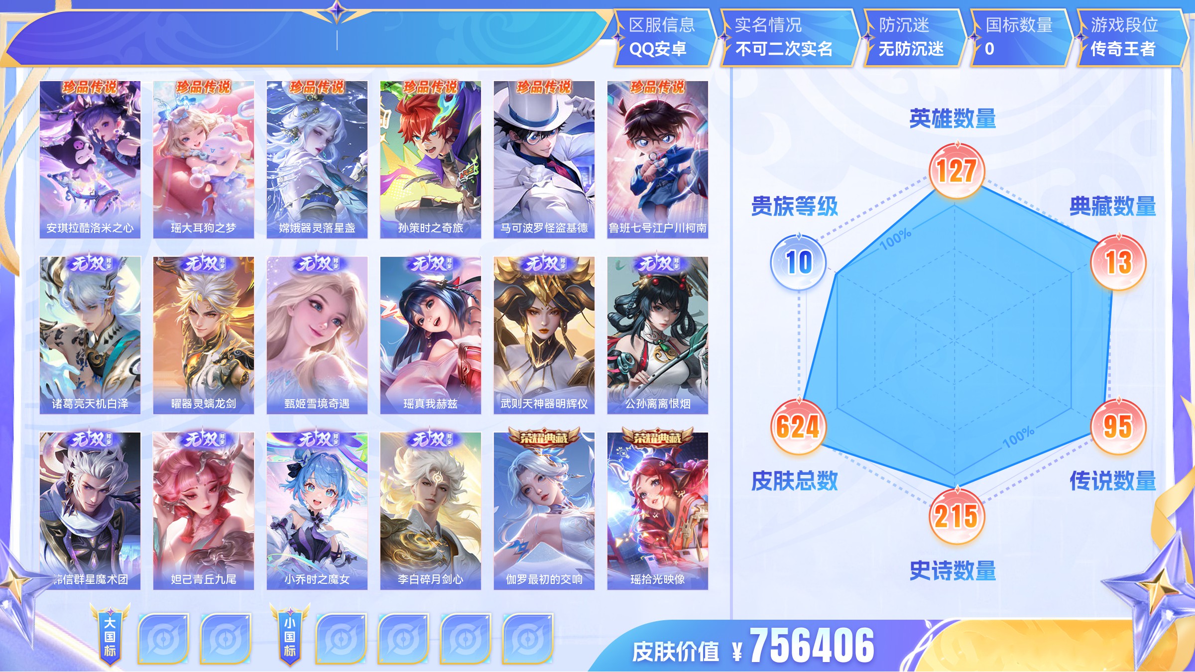 【游戏多多】 【69sjvhec2】 珍品传说6 无双10 典藏13 传说95 史诗215 限定268 英雄127 皮肤624 稀有英雄11 贵族10级 总场次13949 皮肤价值:756406 【珍品传说6】 安琪拉酷洛米之心 瑶大耳狗之梦 嫦娥器灵落星盏 孙策时之奇旅 马可波罗怪盗基德 鲁班七号江户川柯南【无双皮肤10】 诸葛亮天机白泽 曜器灵螭龙剑 甄姬雪境奇遇 瑶真我赫兹 武则天神器明辉仪 公孙离离恨烟 韩信群星魔术团 妲己青丘九尾 小乔时之魔女 李白碎月剑心【荣耀典藏13】 伽罗最初的交响 瑶拾光映像 李白鸣剑曳影 鲁班七号星空梦想 花木兰九霄神辉 虞姬神鉴启示录 铠银白咏叹调 貂蝉幻阙歌 武则天倪克斯神谕 芈月大秦宣太后 孙尚香杀手不太冷 孙悟空全息碎影 小乔天鹅之梦【传说皮肤95】 干将莫邪千山共赴 元歌诡秘之主 大司命死亡执政官 司马懿九山相柳 西施续相思 杨玉环星之鸣奏 澜愿照九州拓 蔡文姬愿照福禄聚 云缨幻光神呛 不知火舞绯月行 虞姬愿照岁时盈 女娲愿照千秋盛 妲己愿照众生和 裴擒虎祥瑞亨通 小乔山海琳琅生 孙悟空齐天大圣 桑启鸣野蒿 庄周牧神诗旅 孙悟空零号赤焰 铠冥王哈迪斯 夏侯惇霜北刀 露娜启示之音 伽罗炽翼辉光 关羽武圣 李白凤求凰 孙策挚爱之约 大乔挚爱花嫁 朵莉亚心动手记 云中君群星魔术团 娜可露露前尘镜 王昭君星穹之声 墨子黄金天蝎座 橘右京枫霜尽 狄仁杰神器狴犴令 海月金乌负日 曜李逍遥 亚连落雪白狼 貂蝉曦玄引 吕布曦玄引 诸葛亮武陵仙君 裴擒虎寅虎赤拳 典韦战鼓燎原 赵云乘龙铭钟鼎 孙策乘龙淬吴钩 孙尚香乘龙问璇玑 马超琥珀纪元 铠琥珀纪元 女娲补天 瑶时之祈愿 艾琳觅芳踪 澜逐花归海 周瑜音你心动 貂蝉猫影幻舞 李元芳飞鸢探春 小乔音你心动 干将莫邪久胜战神 孙悟空地狱火 孙尚香音你闪耀 张良黄金白羊座 宫本武藏地狱之眼 吕布怒海麟威 澜电玩雷克斯 孙策末日机甲 王昭君乞巧织情 赵云淬星耀世 铠绛天战甲 李白诗剑行 蔡文姬花朝如约 狄仁杰超时空战士 李信一念神魔 达摩黄金狮子座 露娜霜月吟 刘备时之恋人 孙膑小动物乐团 后羿黄金射手座 花木兰冠军飞将 狄仁杰夜礼服假面 王昭君永恒水手月亮 公孙离记忆之芯 镜炽阳神光 曜云鹰飞将 马超无双飞将 东皇太一灼幽烈阳 宫本武藏惊梅引 百里守约碎云 梦奇胖达荣荣 甄姬至美化雀舞 西施游龙清影 公孙离祈雪灵祝 虞姬启明星使 孙尚香末日机甲 貂蝉仲夏夜之梦 虞姬云霓雀翎 武则天海洋之心 百里玄策白虎志【史诗皮肤215】 公孙离涂山容容 西施织梦人 戈娅驭风魔法 元歌云间偶戏 瑶山海碧波行 弈星守夜人 周瑜百相守梦 黄忠百相守梦 朵莉亚幻珠鲛人 云缨赞萌露比 后羿石田雨龙 刘禅鸭鸭历险记 扁鹊灵蛊蚀心 狂铁龙之律动 梦奇天降福星 马可波罗暗影游猎 阿轲化蝶舞 芈月瑰影绮梦 蒙恬荣光圣徽 貂蝉逐梦之音 马可波罗山海玄木吟 赵怀真器灵浮梦炉 孙膑茶境仙 阿轲迷踪丽影 百里守约百相守梦 艾琳陌上桑 李白谪仙醉月 妲己时之彼端 马可波罗星界特工 亚连破空之剑 弈星炽弈燎原 大司命东方月初 少司缘涂山红红 蔡文姬夏日便利店 姬小满战舞者 孙悟空至尊宝 蒙犽顽岩魄 暃埋骨钱 上官婉儿神器万象笔 安琪拉魔法小厨娘 苏烈玄武志 王昭君凤凰于飞 黄忠怒海争锋 鲁班七号狮舞东方 海诺心动手记 明世隐夜落电台 甄姬女儿国国王 金蝉唐三藏 孙尚香蔷薇恋人 镜青焰无极 马超神威 上官婉儿群星魔术团 桑启奇遇星旅 扁鹊奇幻香踪 孙悟空大圣娶亲 孙膑寅虎展翼 廉颇寅虎御盾 鲁班七号蔬乡物语 后羿如梦令 嫦娥如梦令 百里玄策超元猎域 黄忠烈魂 孙悟空孙行者 蔡文姬奇迹圣诞 老夫子航海奇遇记 曹操夜都魔契 庄周玄嵩 杨玉环寅虎心曲 大乔乘龙忆丹青 安琪拉乘龙聚宝船 孙膑天狼运算者 伽罗琥珀纪元 后羿辉光之辰 甄姬幽恒 哪吒逐梦之翼 鲁班七号电玩小子 暃星界游侠 高渐离燃音魔法 云中君时之祈愿 牛魔奔雷神使 周瑜雪夜绮愿 阿轲暗夜猫娘 嫦娥拒霜思 典韦岱宗 蒙犽百解令 韩信白龙吟 庄周天秀幻梦 张良千筹问战 刘禅电玩爆裂旋风 镜真我赫兹 镜玫瑰异探 貂蝉唤灵魅影 蔡文姬电玩兔顽号 百里守约真我赫兹 阿古朵顽趣 钟无艳超时空战士 项羽苍穹之光 梦奇顽趣 东皇太一逐梦之光 小乔青蛇 白起星夜王子 孙尚香时之恋人 百里玄策热力回旋 吕布圣诞狂欢 哪吒雪上飞焰 蒙犽龙鼓争鸣 安琪拉时之奇旅 兰陵王暗隐猎兽者 司空震地狱燃心 亚瑟心灵战警 高渐离天秀音浪 海月浮梦罗烟 弈星滕王阁序 米莱狄完美假期 杨玉环银翎春语 莱西奥末日机甲 司马懿暗渊魔法 蔡文姬舞动绿茵 墨子龙骑士 钟馗乐园奇幻夜 沈梦溪月团寄思 公孙离无限星赏官 百里守约特工魅影 廉颇地狱岩魂 嬴政暗夜贵公子 姜子牙闲日渔趣 西施至美乘鲤谣 李元芳匿光侦查者 阿古朵江河有灵 张飞乱世虎臣 刘禅天才门将 马可波罗逐梦之星 孙策猫狗日记 元歌无心 宫本武藏鬼剑武藏 鬼谷子五谷丰年 夏侯惇匿光决锋者 艾琳奇遇舞章 澜赏金猎手 公孙离玉兔公主 韩信傲雪梅呛 赵云百木心呛 嬴政摇滚巨星 夏洛特永昼 黄忠火炮绅士 小乔纯白花嫁 刘禅绅士熊喵 雅典娜黎明之约 墨子金属风暴 庄周高山流水 猪八戒猪悟能 曹操幽灵船长 公孙离蜜橘之夏 鲁班七号乒乒小将 铠曙光守护者 大乔猫狗日记 杨戬天秀启明 西施诗语江南 伽罗天狼