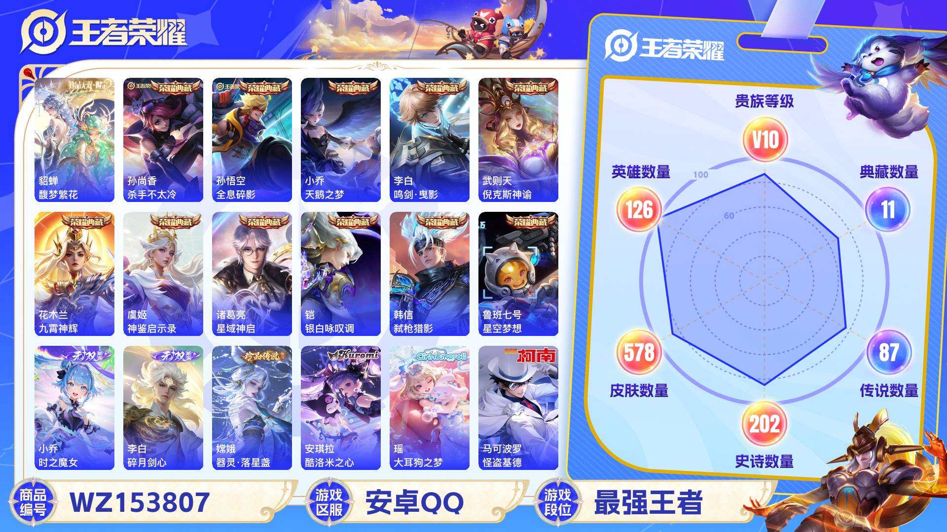 【游戏多多】 【可二次实名】ys 【安卓qq】【营地id:373880627】【贵族:10】121英雄 564皮肤 【典藏:9】【无双:1】【星传说:4】【传说:102】【史诗:207】【典藏:虞姬神鉴启示录 韩信弑呛猎影 貂蝉幻阙歌 铠银白咏叹调 花木兰九霄神辉 李白鸣剑·曳影 夏侯惇无限飓风号 小乔天鹅之梦 芈月大秦宣太后】【无双:妲己青丘·九尾】【星传说:时之愿镜 未来机甲 金色仲夏夜 星际治安官】【传说:朵莉亚心动手记 云中君群星魔术团 墨子黄金夭蝎座 海月金乌负日 亚连落雪白狼 吕布曦玄引 貂蝉曦玄引 典韦战鼓燎原 孙尚香乘龙·问璇玑 孙策乘龙·淬吴钩 赵云乘龙·铭钟鼎 马超琥珀纪元 铠琥珀纪元 澜逐花归海 露娜霜月吟 孙膑小动物乐团 狄仁杰夜礼服假面 王昭君永恒水手月亮 甄姬至美·化雀舞 大乔时之奇旅 鲁班七号时之奇旅 兰陵王影龙天霄 吕布遇见神鼓 云缨鹤归松栖 上官烷儿妄想奇谈 马可波罗妄想实况 东皇太一灼幽烈阳 诸葛亮鹤羽星尊 亚瑟追逃游戏 安琪拉追逃游戏 张飞百相守梦 虞姬无限倾心 项羽无限倾心 孙悟空齐天大圣 小乔山海·琳琅生 曜山海·苍雷引 李信山海·炽霜斩 吕布怒海麟威 李白诗剑行 狄仁杰神器·狴犴令 马超无双飞将 大乔挚爱花嫁 孙策挚爱之约 露娜启示之音 瑶时之祈愿 裴擒虎寅虎·赤拳 鲁班七号寅虎·瑞焰 孙尚香异界灵契 赵云淬星耀世 西施游龙清影 曜李逍遥 兰陵王默契交锋 公孙离祈雪灵祝 诸葛亮时雨天司 镜炽阳神光 虞姬启明星使 孙悟空零号·赤焰 关羽武圣 曜云鹰飞将 李信一念神魔 刘备时之恋人 伽罗太华 貂蝉猫影幻舞 张良黄金白羊座 干将莫邪久胜战神 虞姬云霓雀翎 达摩黄金狮子座 百里玄策白虎志 花木兰冠军飞将 后羿黄金射手座 杨戬永曜之星 诸葛亮武陵仙君 貂蝉仲夏夜之梦 李白凤求凰】【截图展示段位不代表实际段位,如赛季更新等不可抗拒因素发生变化、时限道具不保证所剩时间、标题未写送点卷默认不送】---【左友账号,精品特惠 】永久包赔