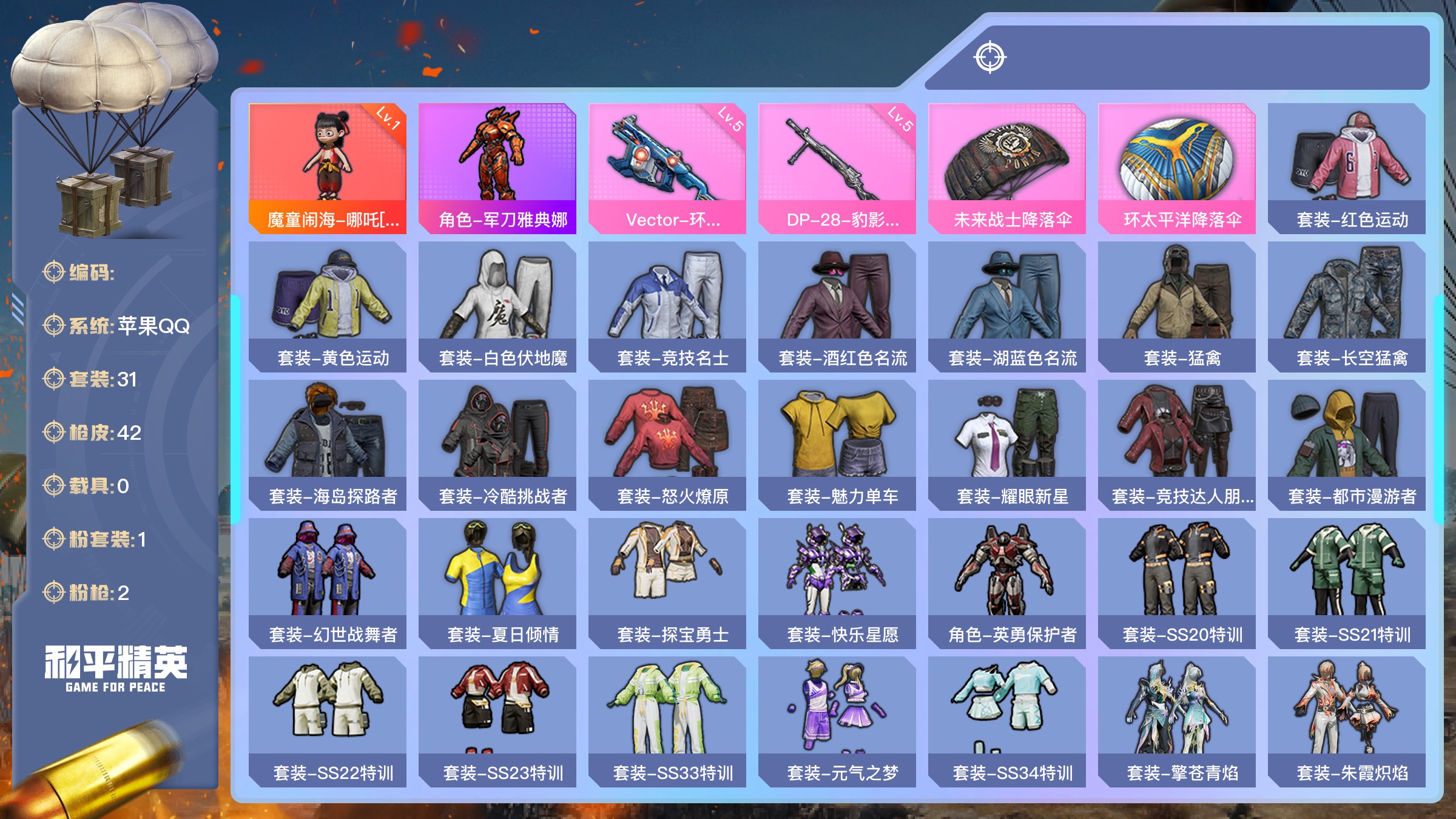 【游戏多多】 【037mnf1cb】热力值:12617,1粉装,2粉呛,2粉色战备,31套装,42呛械,37装备,8降落伞;等级:lv.38 历史最高段位:卓越王牌7星 当前段位:不朽.星钻ⅳ;王牌印记1次 卓越印记1次; 【热门套装】:魔童闹海-哪吒[1级],角色-军刀雅典娜;【红色套装】:魔童闹海-哪吒[1级];【粉色呛械】:vect-环太平洋[5级],dp-28-豹影疾电[5级];【粉色降落伞】:未来战士降落伞,环太平洋降落伞;【其他套装】:套装-红色运动,套装-黄色运动,套装-白色伏地魔,套装-竞技名士,套装-酒红色名流,套装-湖蓝色名流,套装-猛禽,套装-长空猛禽,套装-海岛探路者,套装-冷酷挑战者,套装-怒火燎原,套装-魅力单车,套装-耀眼新星,套装-竞技达人朋克,套装-都市漫游者,套装-幻世战舞者,套装-夏日倾情,套装-探宝勇士,套装-快乐星愿,角色-英勇保护者,套装-ss20特训,套装-ss21特训,套装-ss22特训,套装-ss23特训,套装-ss33特训,套装-元气之梦,套装-ss34特训,套装-擎苍青焰,套装-朱霞炽焰,套装-凌霄紫焰;其他呛械:m416-蓝色火焰,m416-绯红前夜,scar-l-炫彩节奏,scar-l-彩虹符号,scar-l-红色方程式,akm-涂鸦街区,akm-环太平洋,akm-破晓战魂,akm-虎虎生威,g36c-乌木金纹,famas-乌木金纹,arx-凌霄紫焰,蜜獾-冰澜龙吟,m16a4-幻世战舞者,莫辛纳甘-乌木金纹,vss-未来战士,mini14-鸡智如我,mini14-金玉无双,mk14-乌木金纹,mk14-薄荷星砂,野牛-乌木金纹,uzi-金玉无双,uzi-天降萌叽,js9-凌霄紫焰,aks-74u-乌木金纹,ump45-生命誓言,汤姆逊-环太平洋,s12k-霓彩脉冲,s12k-幻世战舞者,s686-生命誓言,m249-绯穹魔姬,m249-无面战甲,mg3-乌木金纹,mg3-幻世战舞者,mg-36-凌霄紫焰,p92-凌霄紫焰,撬棍-环太平洋,撬棍-幻世战舞者,平底锅-凌霄紫焰,破片手留单-呆爆全场;【其他降落伞】:ss34王牌降落伞,白昼之火降落伞,化学天才降落伞,幻世战舞者降落伞,凌霄紫焰降落伞,普通降落伞;【伙伴】:伙伴-盔仔,详情看图【实际信息请以最终验号结果为准】【苹果qq】【不可二次实名】【无】