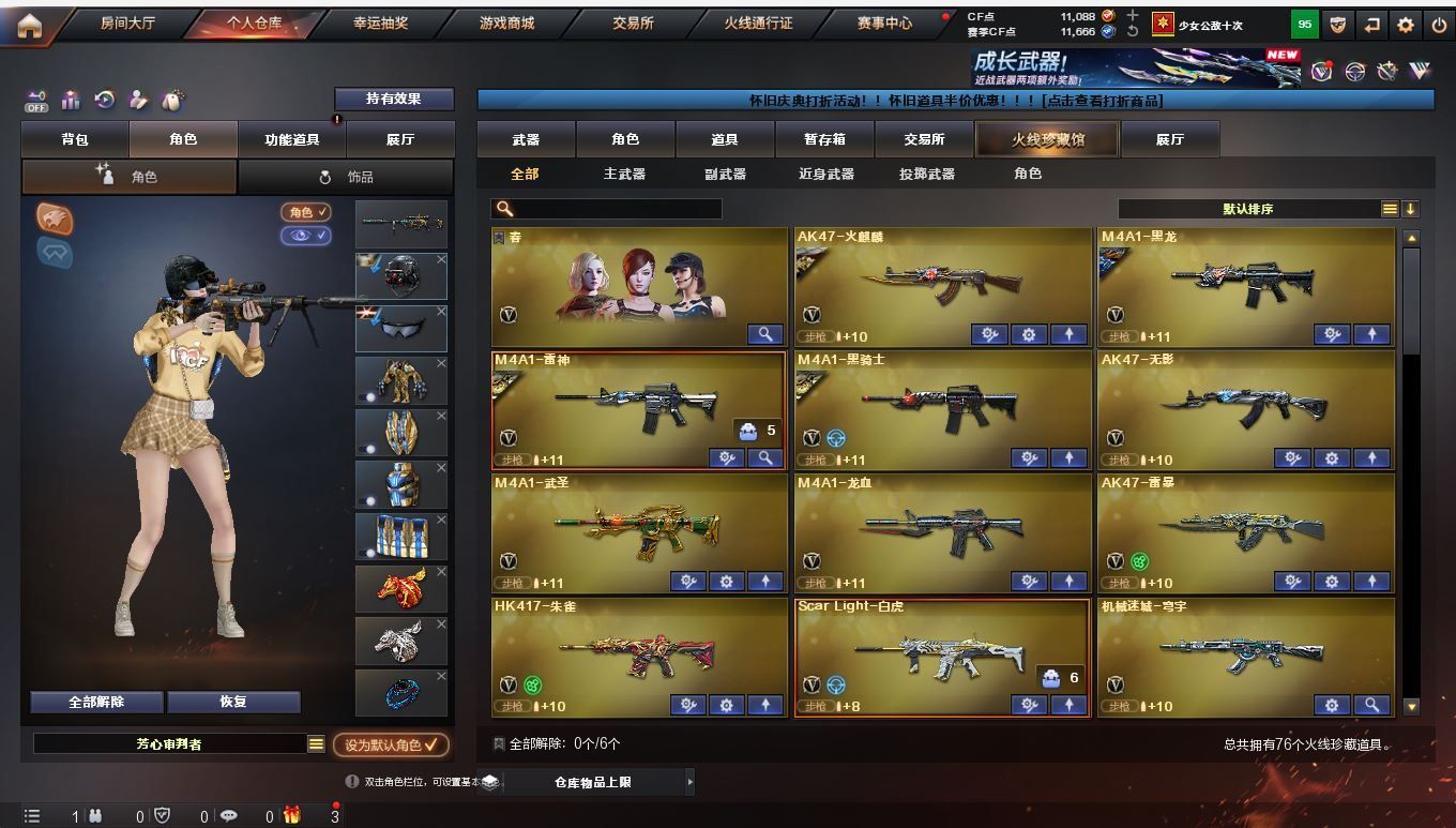 热门武器:火麒麟,雷神,QBZ金色蔷薇,Scar白虎,毁灭