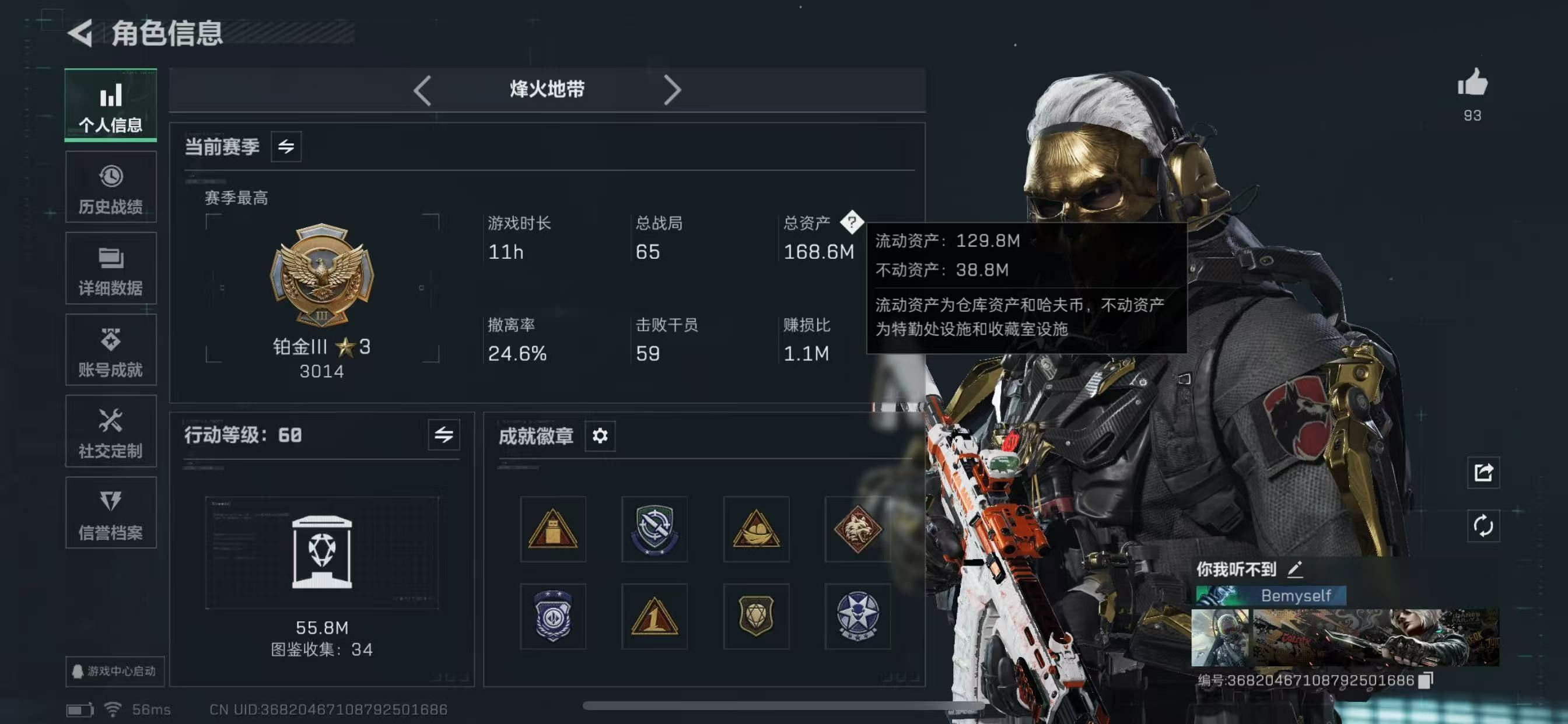 【游戏多多】【三角洲行动】【编号:14826】汤12203总资产168M,哈夫币832w,近战-北极星/近战-影锋,红狼-蚀金玫瑰/威龙-壮志凌云/峰医-无题密令,仓库lv8,靶场lv5,训练中心lv7,aw子弹20发,详情看图;