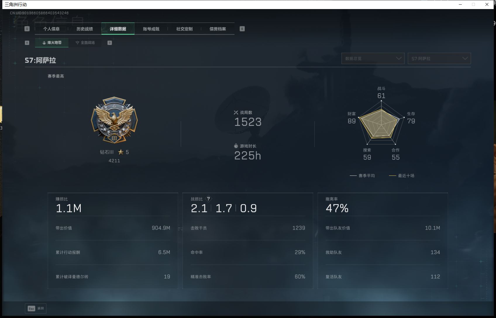 【游戏多多】【三角洲行动】【编号:17079】皮肤破产号/蚀金玫瑰/天际线/仓库7几/指挥中心5级/训练中心满级/不出5级/潜水1级/收藏室满级/电锯惊魂/壮志凌云/夜鹰/送葬人/不破誓约/金牌射手/3*3已经做完/k416优品c/优品Bm4a1/巨浪优品C/336藏品皮肤