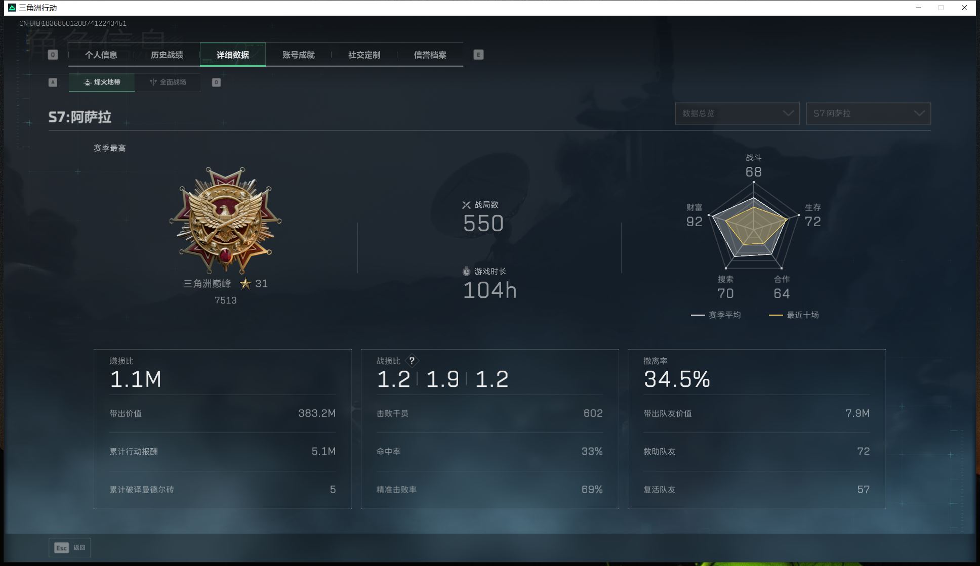 【游戏多多】【三角洲行动】【编号:17782】XAB0028流动资金305M/北极星/满体满负重/电锯惊魂/送葬人/金牌射手/1级收藏室价值8600w/非洲之心/烽火奖杯/32发aw子弹/182藏品皮肤